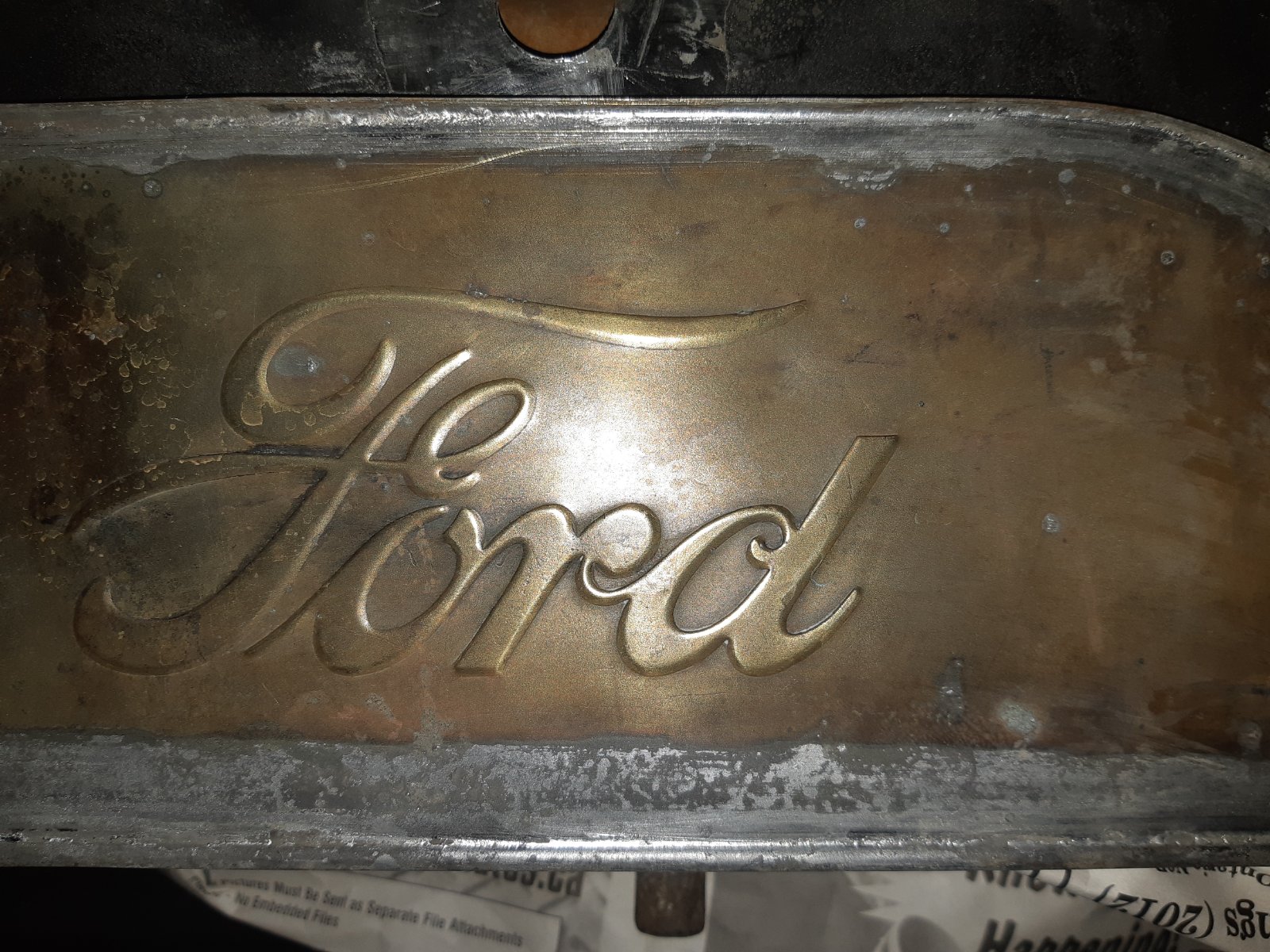 However so far I have only seen pictures of one brass rad on a car with the "Made in Canada" on the front plate. I have two complete Canadian brass rads in the barn, one a late 1914 to 1916 style with the Ford Ontario embossing and serial number on the rear tank panel. The other is a late 1915 or 1916 export model with the extra large top tank for “warmer climates”. Both of them have only “Ford” stamped on the front tank plate with nothing below. In addition, I have parts of a couple more and looked over 5 or 6 other local original radiators on a few Ts and everyone has only “Ford” on the front with nothing below. But I have seen them with the embossed Ford Canada on the back tank plate and one with the soldered Ford Canada tag on the bag, but not one has “Made in Canada” on the front.