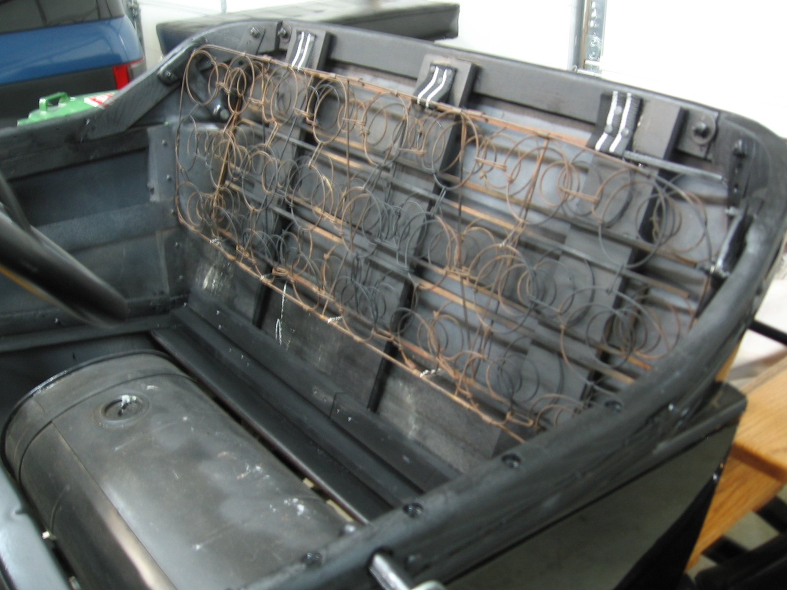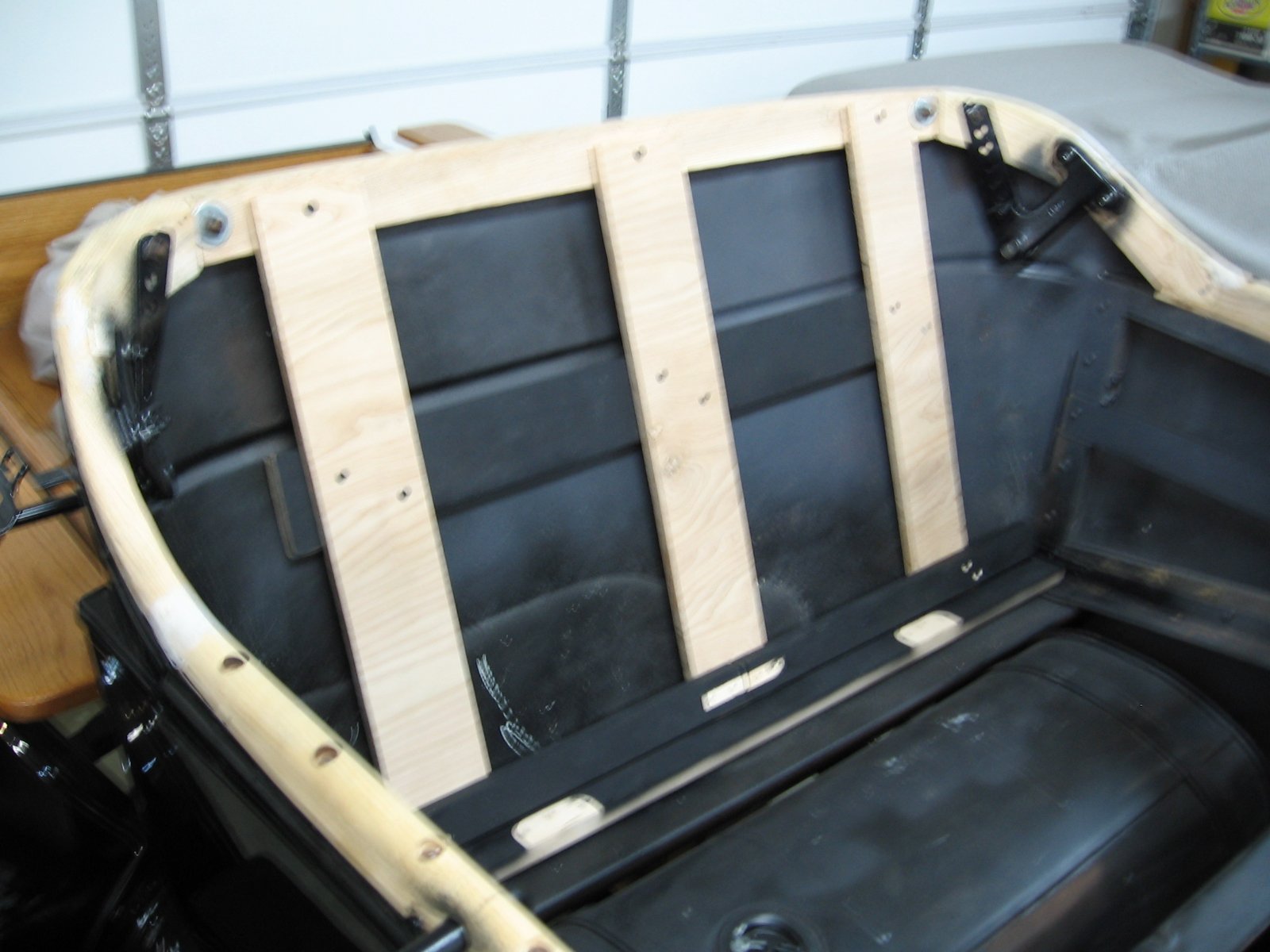 The seat back springs on touring cars just sit on the sheet metal from the factory, but I decided to fabricate up some wood support slats like the roadsters came with.