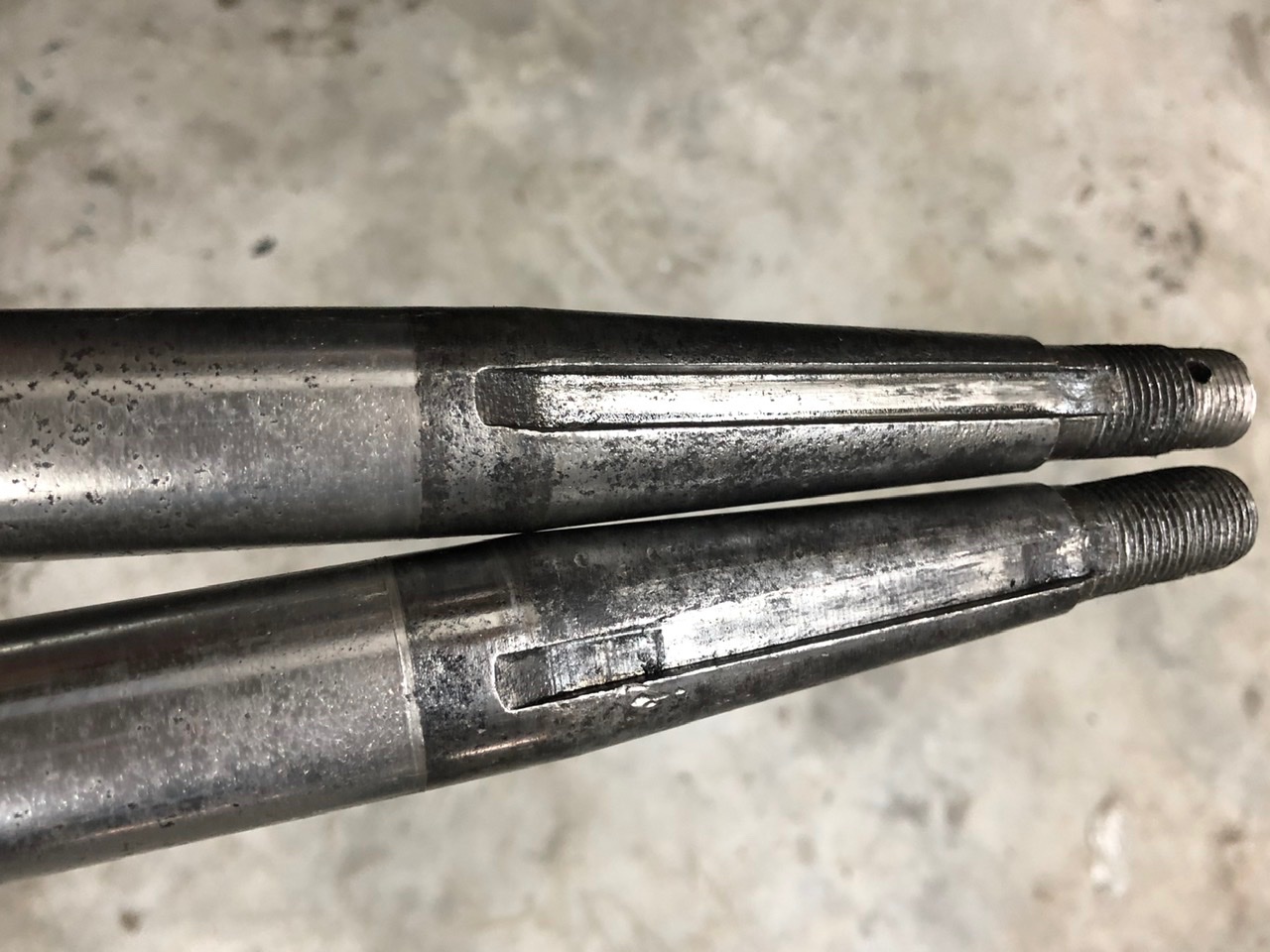 Have never found a used axle on rear tear downs that met specs for safe touring requirement. Most times if the keyway is good, other details are poor. Both of these worn axles came out of the 25 Coupe.