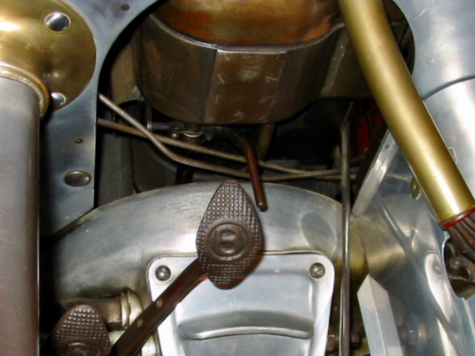 This is a photo taken from underneath the Ford Special at The Henry Ford. It was obvious from carbon around the ports and shield that the ports were run in the open position a portion of the time. It's amazing to think this is the same seat Frank Kulick occupied when he beat the 200 hp blitzen Benz at the Michigan State Fairgrounds in the summer of 1911: