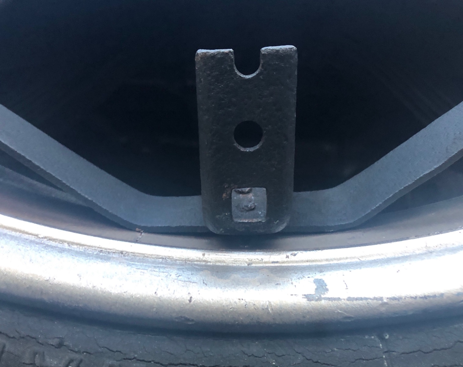 First place the demountable rim and tire so that the tire valve is straight up at the top of the carrier, looks the best that way, the demountable rim lugs aren't used for the mounting clamp.