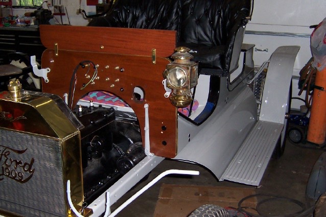 For those aghast of my modification of the later bump out brackets, remember I phrased the job was for the faux '09 I built! That means it was a fake '09, and so stated on a brass engraved plaque in the rear seat compartment. The frame was '20s, the engine was starter '23 and everything was between '09 and '27. Wood body and metal all reproduction.