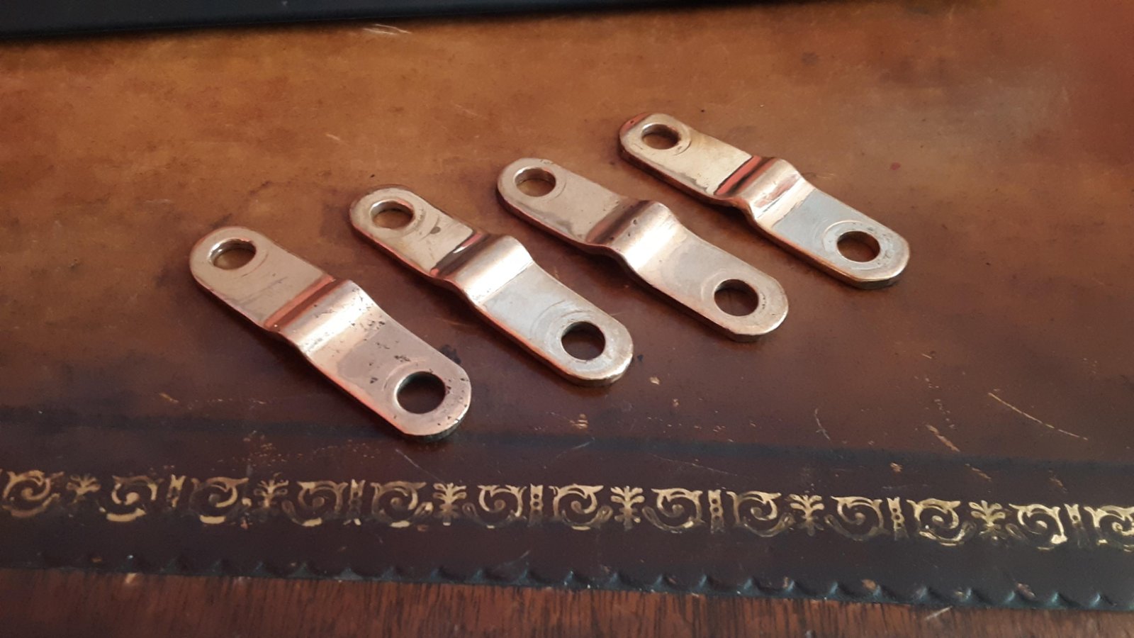 Did similar for the faux 09 roadster, took a reproduction later bracket with that bulge for the later rounded dash brass trim, and hammered it flat, then polish. Worked out OK for the project.