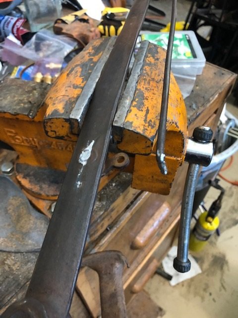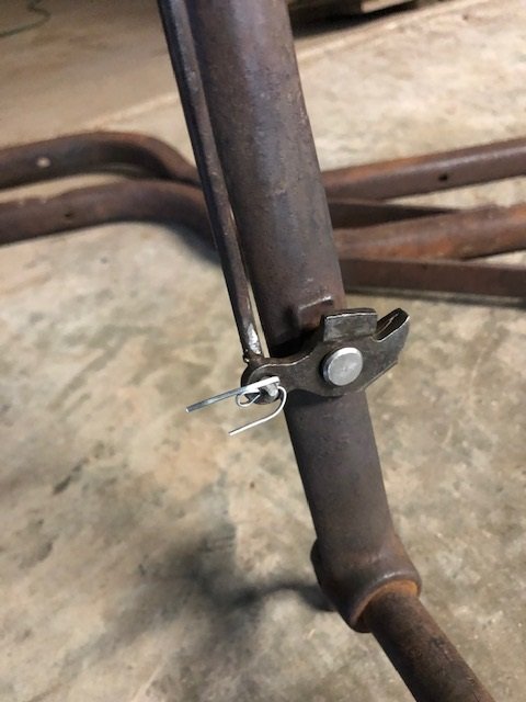 My chassis has no hand brake. I acquired several from Dave Huson in various states, settled on this one. The lever rod end that normally has a cotter pin is slightly broken off with no hole for a cotter. I can think of several ways of fixing this a) one of those circle retainers with teeth but I will have to figure out a size. b) a gob of steel from my welder wider than the hole. c) change out the rod for a new one. b) is the most available, a) is the least invasive but might not work so well, c) is a lot of work and the most expensive. Also how does the speed lever look in the picture? It looks ok to me not worn out. Opinions?