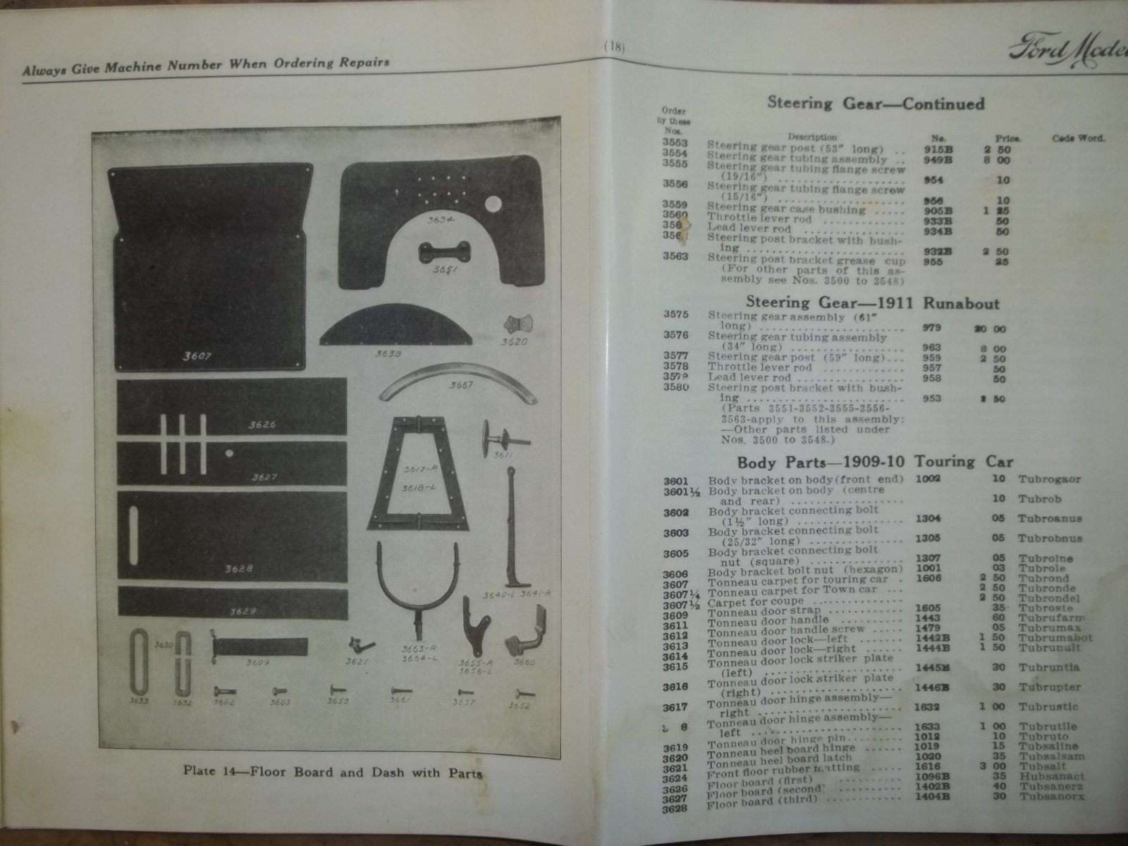 If I knew the Factory Number for the Tonneau (rear) mat or carpet for the Tourabout body , would be happy to get this from the Benson Research, but can't find such number. The Tourabout rear seat cushions (L and R) have Factory Nos. 2289 and 2290, but can't find listing for the mat or carpet.