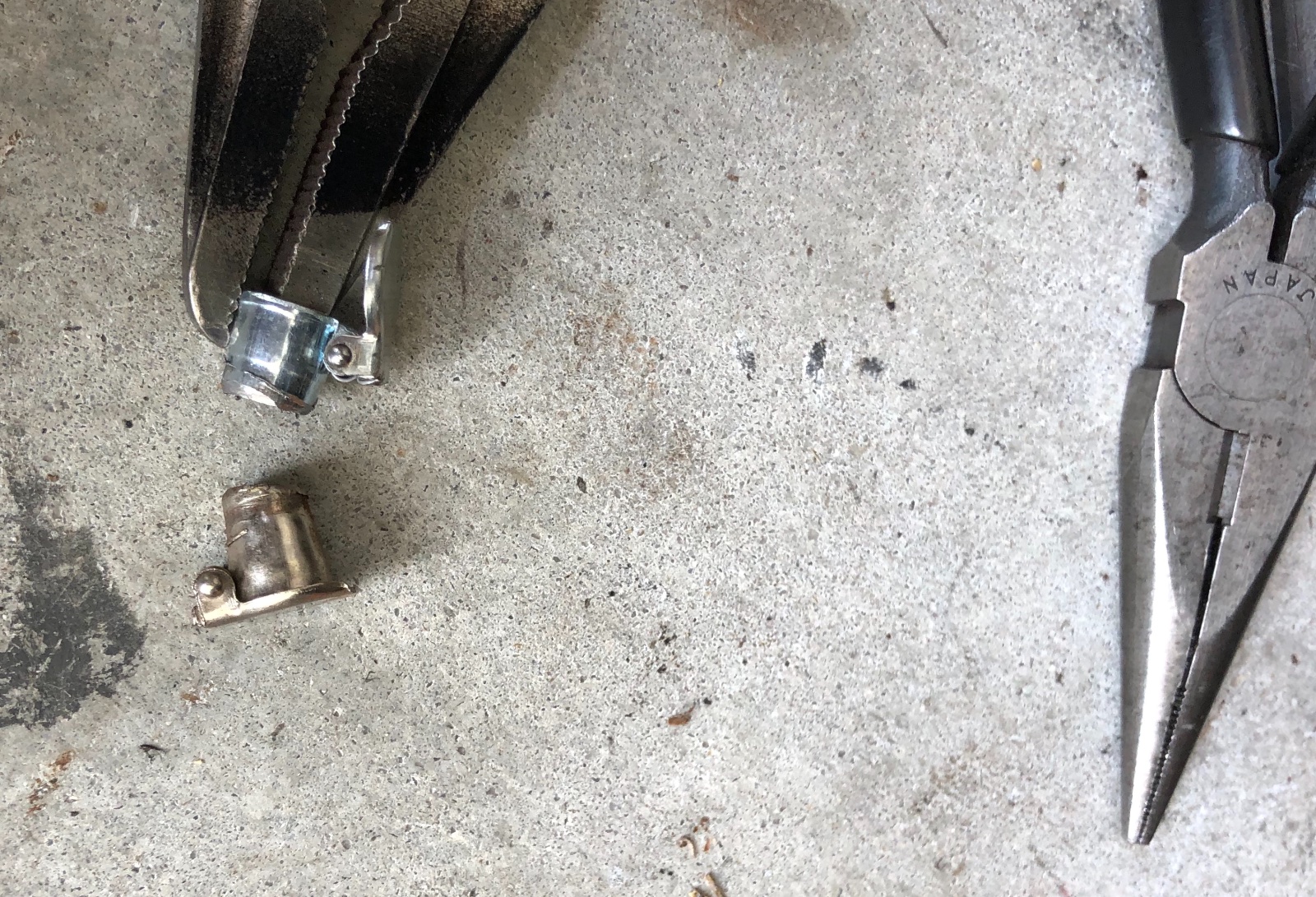 Then sneak the stubby oiler in place, used a small screwdriver blade as lever, to roll it down and in the hole. Then seated with a blow on the punch resting on the screwdriver blade to spread the force.