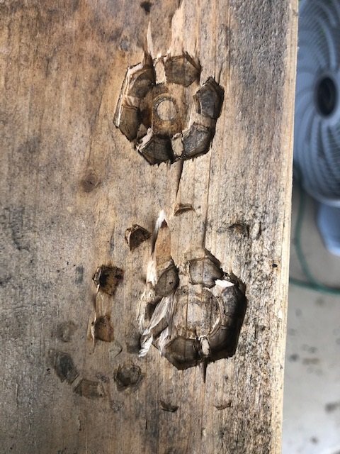 The goal was to take a 11 tooth pinion gear off one assembled drive shaft and tube and put it on another drive shaft that was disassembled. The other was a standard 10 tooth pinion. I used a 3 jaw puller and a impact to take off the standard 10 tooth un-assembled. The basketball goal base it is resting on is optional. The second one I used the Steve Jelf and others bang it on a piece of wood method. See picture forensic. There are 3 impressions in the wood. Impression 1 is the greasy nut resting on the wood before banging. Impression 2 is the first hard bang on the piece of wood with the pinion gear staying put. Impression 3 in the middle is the second bang on the piece of wood with the pinion gear impressions showing that it has now come loose. Ta da!