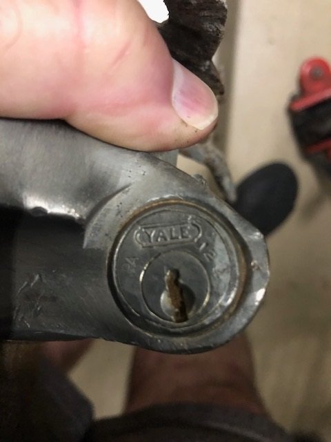 Here's a picture of the lock on the steering shaft. The lock says PA 129. the bad news is there appears to be a broken off key in the lock.