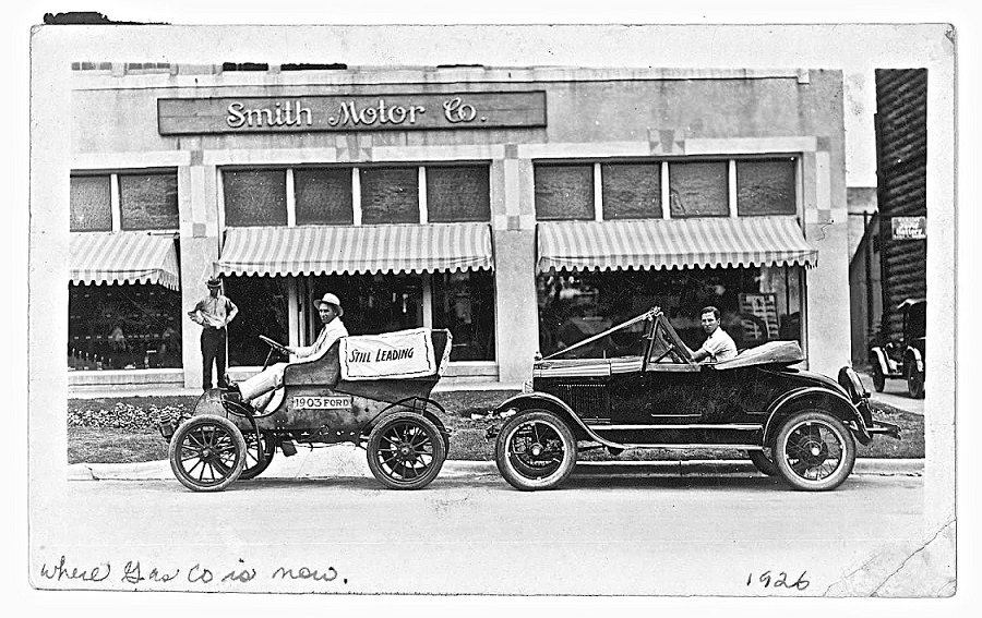 This looks like it could be the same roadster and possibly the same driver, without the hat. Photo was taken in front of Smith Motor Company, Taylor, Texas.