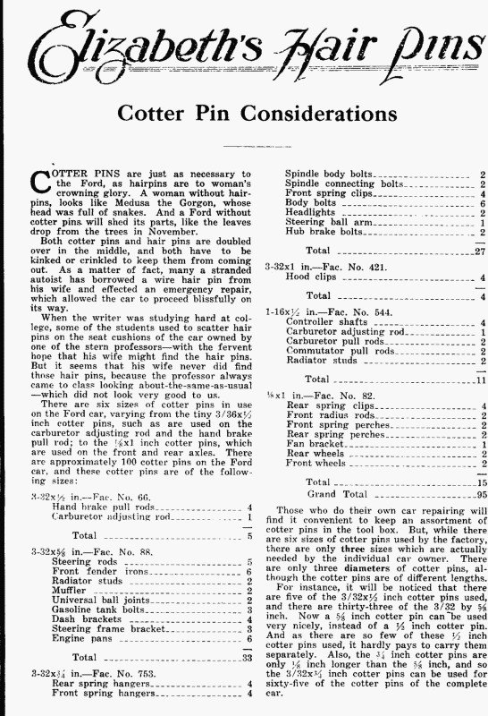 Im finally finishing the rear axle and differential of my ruxlsetll but I need to know what sizes of cotter pins are used throughout the car and namely in the rear axle? Also is there different sixes of cotter pins for a ruckstell? Thanks.