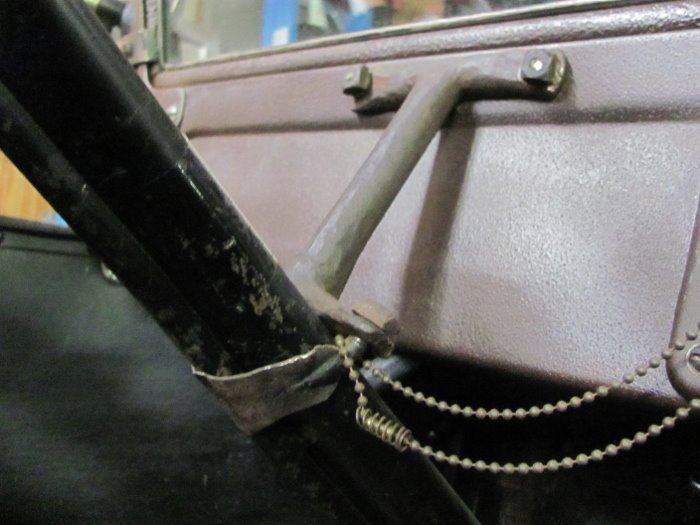 Earlier ones had only 2 point connection for the long steering column, at the frame and at the firewall. Was about sufficient for many owners but some wished for more stable column. Wood firewall was good but the change to thinner metal firewall caused Ford to add the dash panel support too.