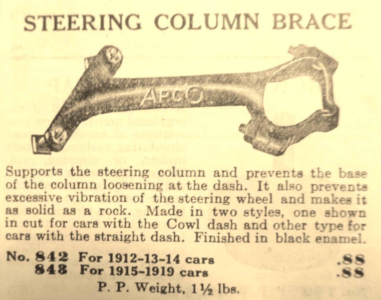 The more I drive My 21 Touring after installing the Apco brace I can imagine back in the day the column would get looser after a fairly short time. I installed a new wood firewall when I restored the car and the column was pretty rigid but after I installed the Apco brace it just seemed better with the extra support.