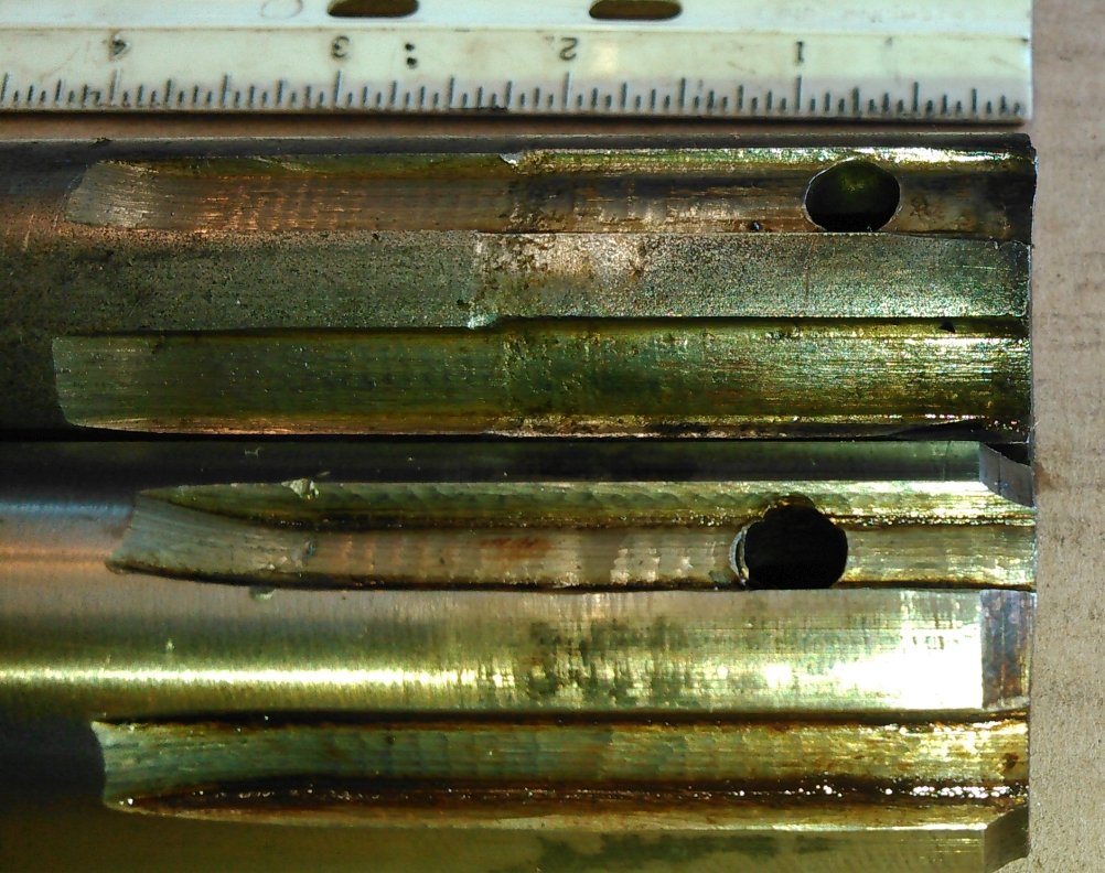 There have been a few times that this has been mentioned in this web site, so I ran across this case and took some pictures of it. There are four pictures of drive shaft splined ends and couplings for a Model TT truck drive shaft. One end is an early drive shaft that came off a Model TT rear end. The early rear end in one from 1918 rear end that has the bead on both side of the housing, the rivet that holds the brake plate on and the back upper cover for the worm gear that has NO oil filler hole. Also, on the upper top backside of the housing there is the stamped matching numbers on that rear end that is 18592, so it is early of the 40,000 or so, that were made in 1918. The other drive shaft came off a later, more common rear end. Nothing special here.