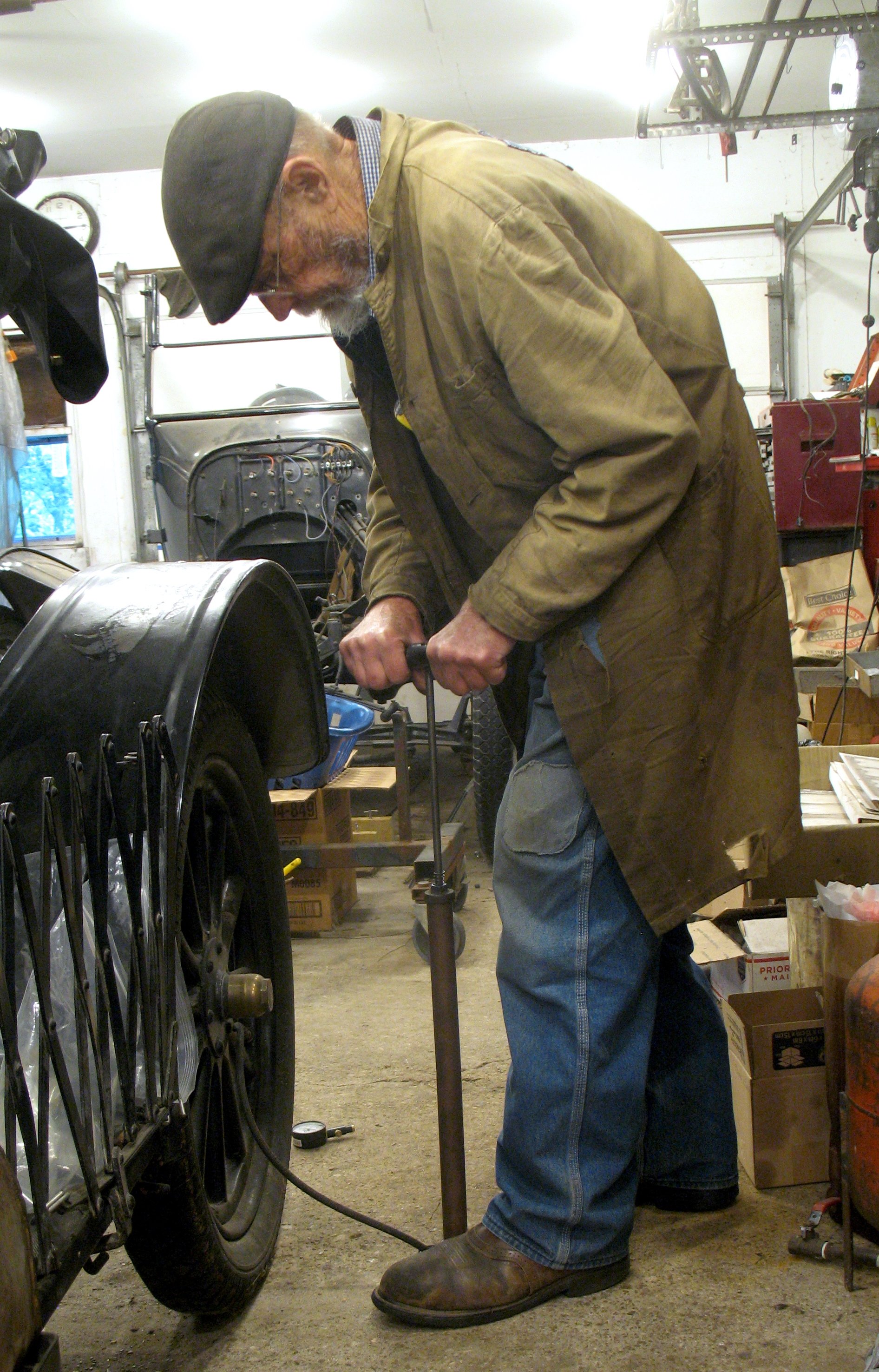 I hooked up the better of my two Ford pumps to a low tire and went to work. Being of the elderly persuasion I found the exertion challenging enough to take occasional breaks during the job. I started with the pressure at 5 psi and blew it up to 72 psi (had to let out a little air at the end).