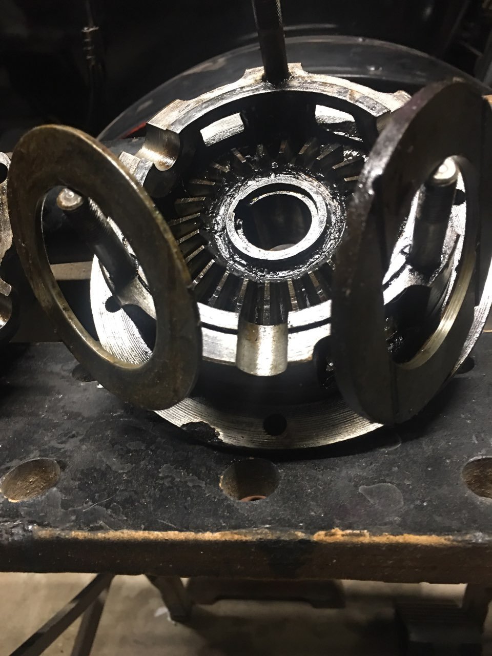 Looking for axel drive gears ! The right side gear in the differential bad and the right top diff cover grooved also, can not get axel out of ring gear diff housing used a plastic hammer on it and my brass hammer did not come out ,the axel rotates but when you hit it it dose not rotate, hit with care. Axel keepers are removed so i cant tell if there is damage to the drive gear or the ring gear. Diff did have babbitt bearings worn on right side, Axel and the wheel would move in and out on the right side , driver side is fine no play no noise from the rear axel! the drive gear #2520 b