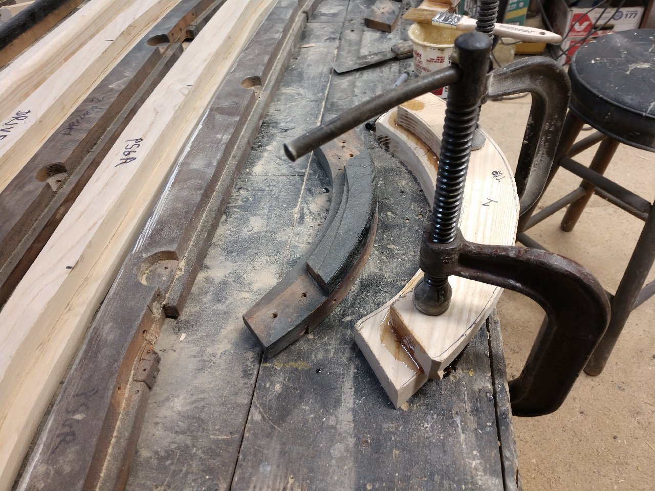 Get'n on top of the top !! I hope Henry forgives me but I'm adding a little muscle to the corner pieces. Every T I've worked on, the corner pieces had failed. So I'm making the entire rear top piece by laminating and crossing the grain so to prevent future problems. It's the hard way to do it but I'm sure it will last much longer. 1927 Model T Fordor ***keep in mind EVERYTHING is in the rough stage yet. ***