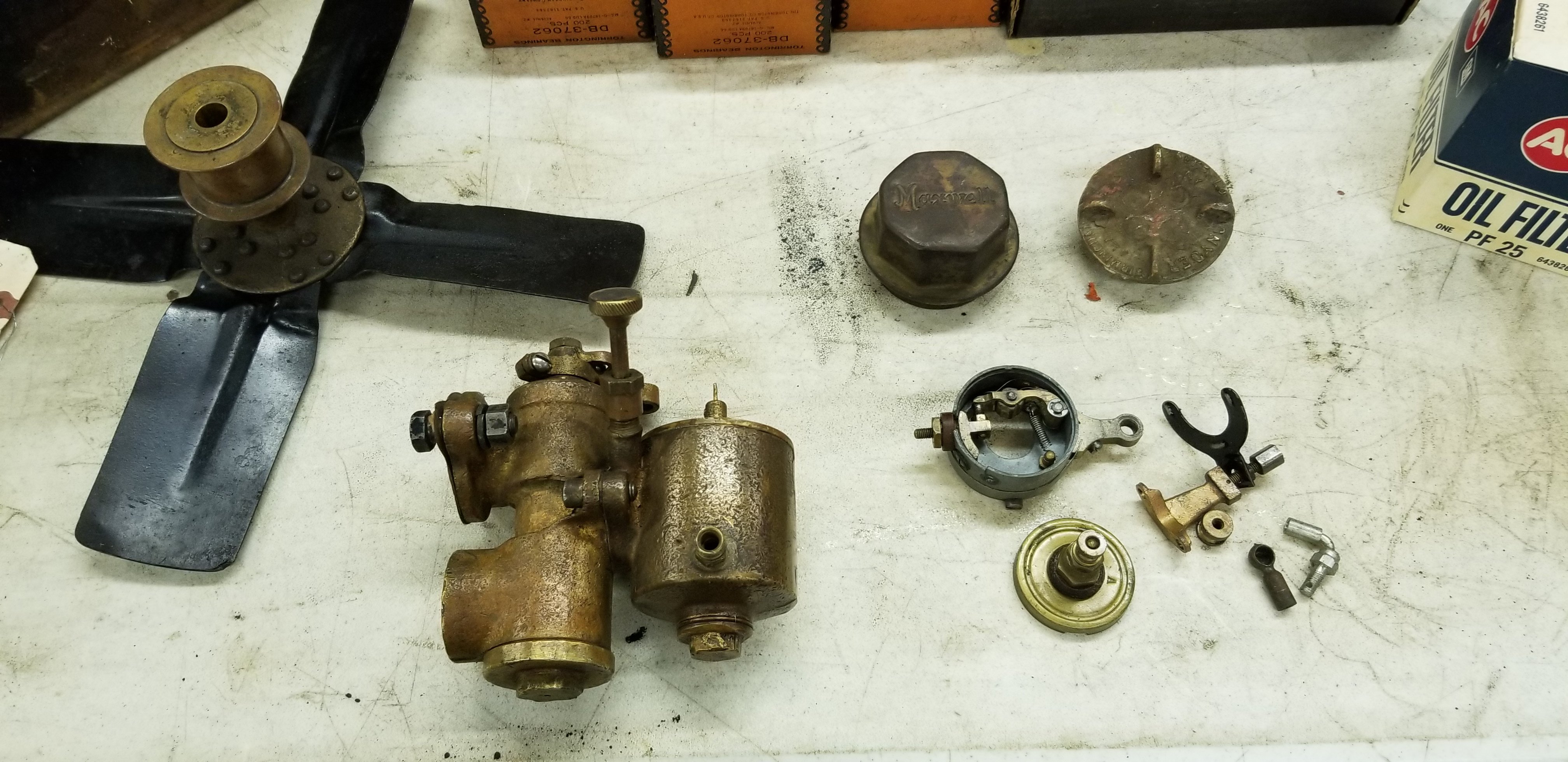 Awesome stuff. I like the wheel bearing parts and the brass hubbed fan. Cool Maxwell cap too.