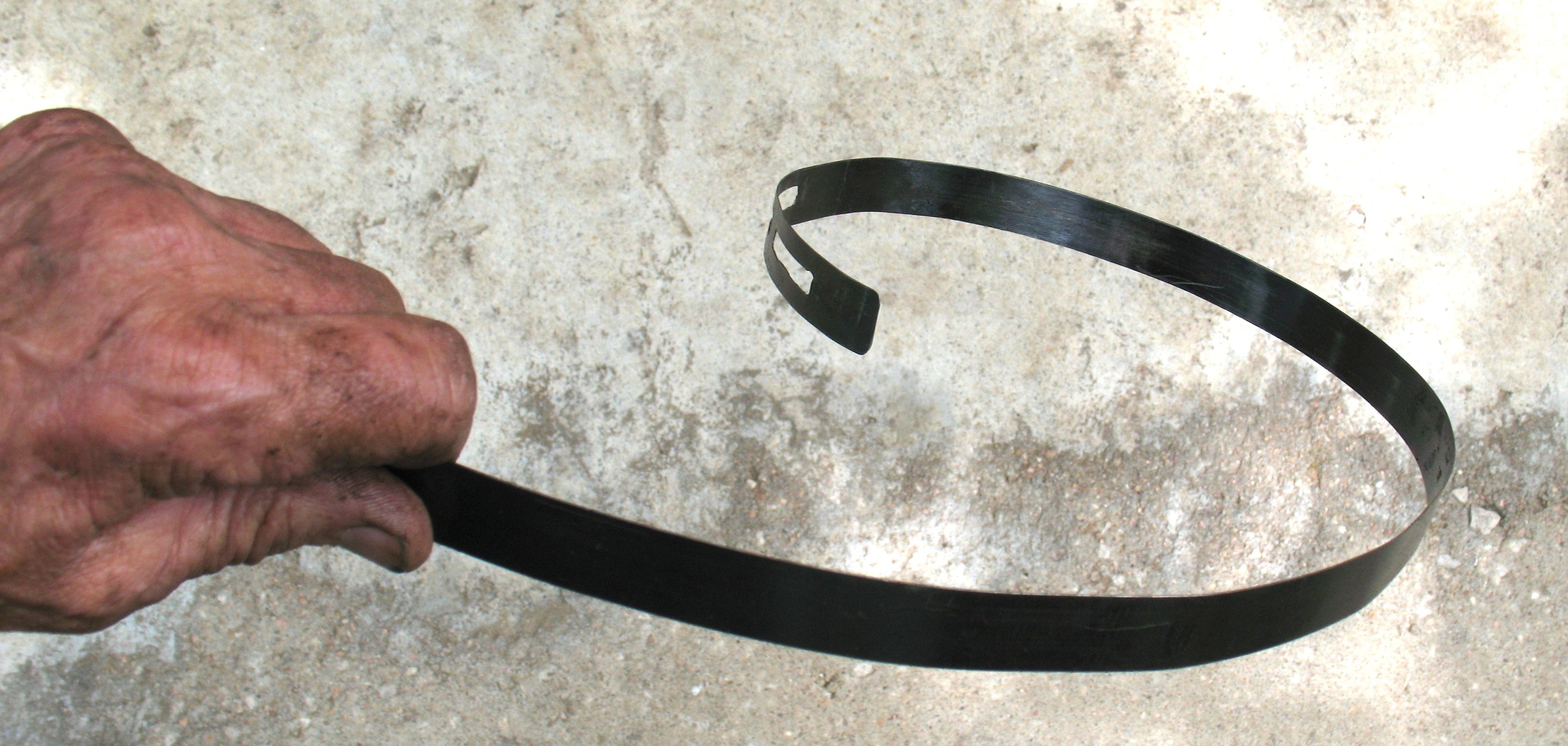 A handy tool is this puller. It pulls the bands around the drums. You can buy it or make it from a piece of pallet strap.