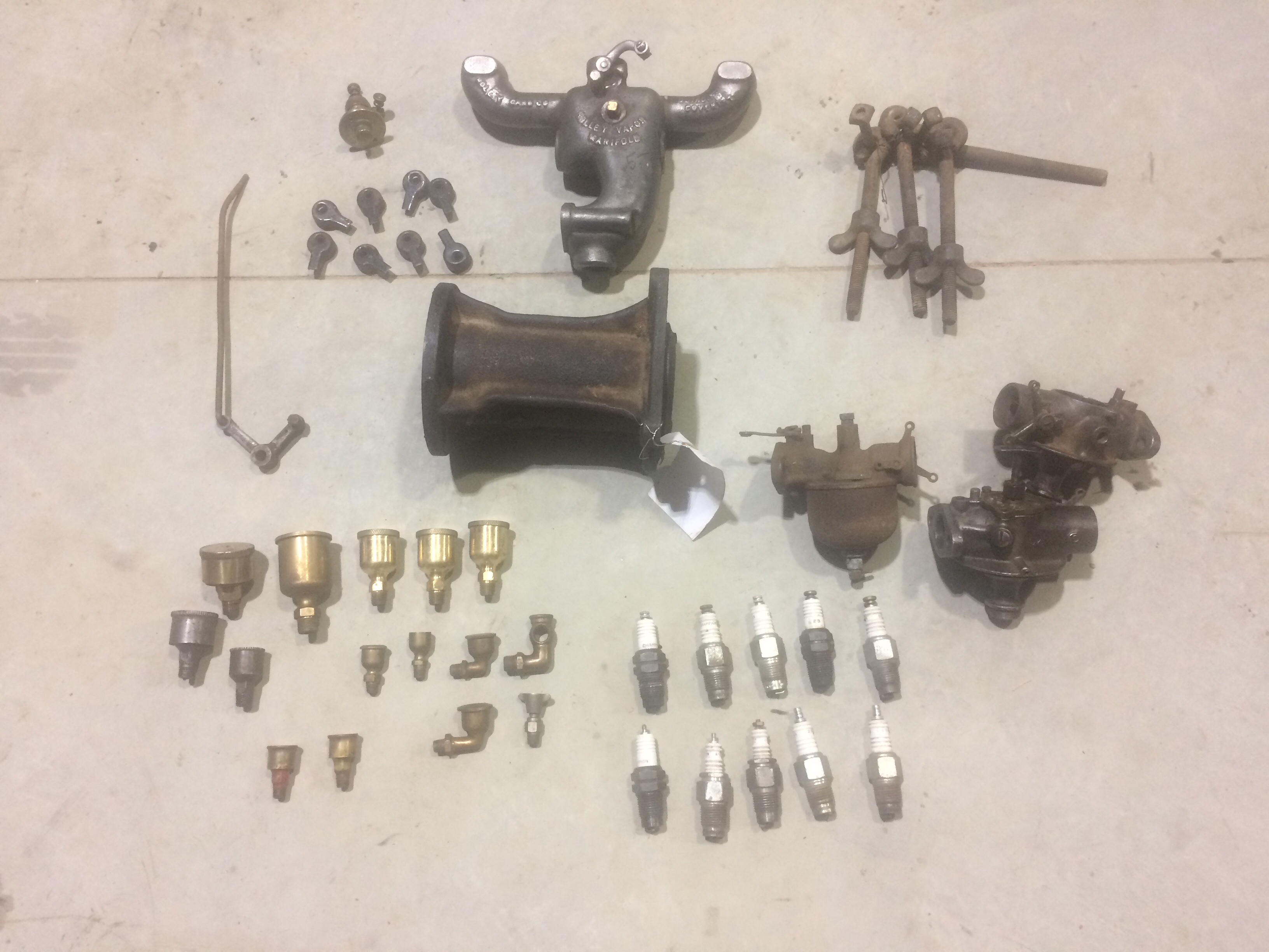 I'll post other photos elsewhere, but for treasures I bought some T literature, a few tools, a couple of timers, side-lamp burners, some speedo stuff including a couple of NOS wheel gears, a decent 15 windshield assembly, and some other windshield parts to be used as a display for a set of wind-wings I've got, and a hand-full of brass thumb-nuts for spark plugs. My big prize is a fantastic early self generating headlamp - Autolyte, circa 1903/4. Every year when I go to Hershey, aside from hunting for more early plugs for my collection, I set the goal of buying at least one very nice piece of brass for my lamp collection. No Hershey, so we did it at Luray. The lamp is the only find I've got photo's so far as the truck hasn't been unpacked yet.