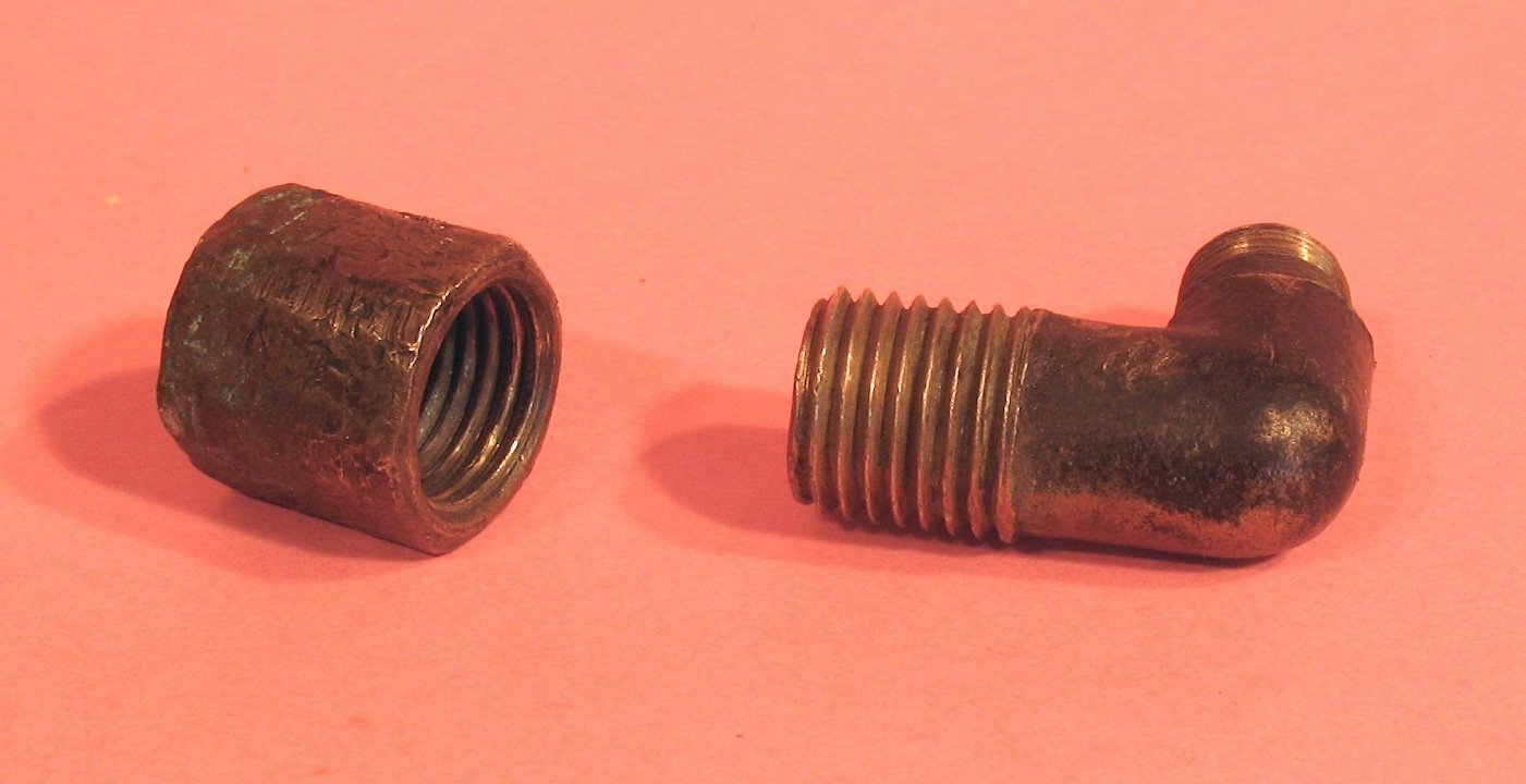 Sometimes the brass casting in the tank and the thread on the outlet tighten up with the fuel line outlet way out of whack. I am averse to screwing things overtight and breaking the solder joint between the tank and brass casting, just as I am to relying on sealants at the thread and leaving the outlet at less than optimal tension. I have resorted to tinning the thread on the outlet and wire brushing that tinning off while hot, so that the thread is built up somewhat and comes up to tension somewhat earlier than before, allowing a more favourable orientation of the outlet.