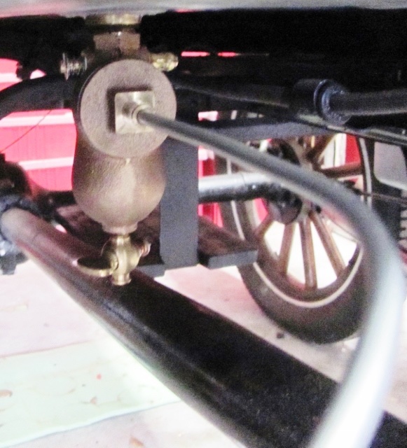 Where is the tank on your tudor? If under the seat, how do you get into the back seat? Two important things about the fuel line are that the line goes up toward the sediment bulb and toward the carburetor. The lowest point is somewhere between the two, but it should be routed down to the lowest point and up toward the ends. This is to prevent getting an air bubble trapped between the two ends, because the fuel will rise above air. The other thing is not to have the line running next to the exhaust pipe. It can cross the pipe at right angles but either under or over the pipe as far as you can get it without risking getting caught on something as you drive along. It is OK to use a P shaped clamp to attach it to the frame. The reason to keep it away from the exhaust pipe is to prevent vapor lock where the fuel evaporates and forms a gas bubble and will not flow to the carburetor. I will attach pictures of the fuel line as I have attached it on my 22 Roadster which has the tank under the front seat. I have run it from the sediment bulb directly to the top frame rail over the exhaust pipe, then along the frame gradually sloping downward to the clamp on the lower frame rail next to the brake cross shaft. Then upward toward the upper frame rail and through the notch in the wood block at the crankshaft ear and to the carburetor. I have had no problems with it.[/attachment]