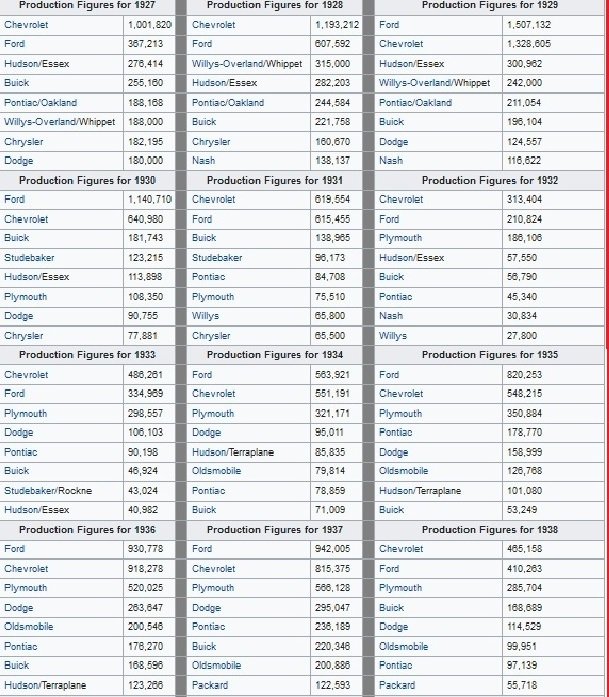 Truth in this ( from Steve Jelf post) "Vehicle registration records would probably tell it more accurately than we can."