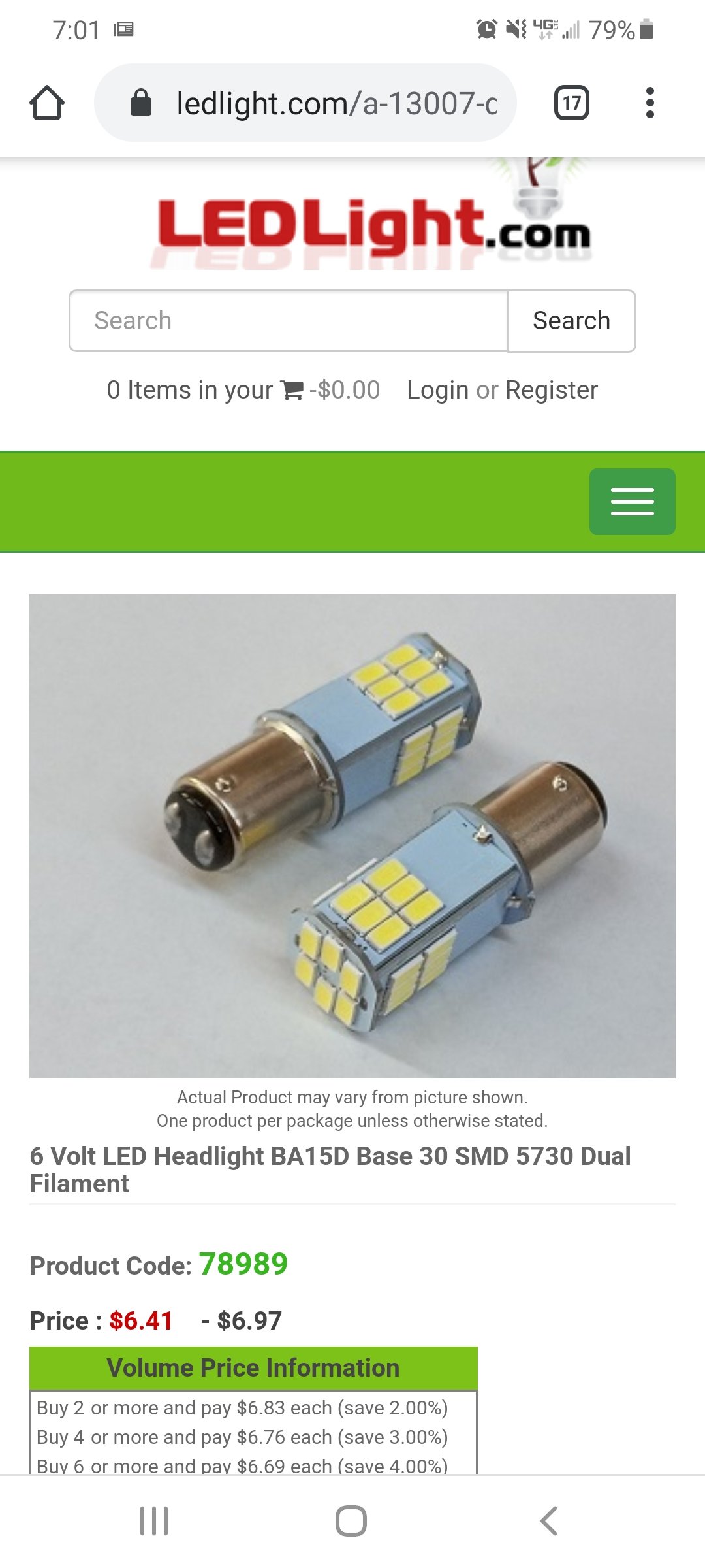 These are the 6 volt Led Headlight bulbs I use in My open express. even 360 degree light. low and high beam/brightness elevated element for proper focus. Ledlight.com part # 87455W 6V dual filament 6000K You can barley see the amp meter needle move on high beam / on. They also make this bulb for 12 volts #67499W looks the same as #87455 6V with elevated element but they don't call it a headlight bulb ?