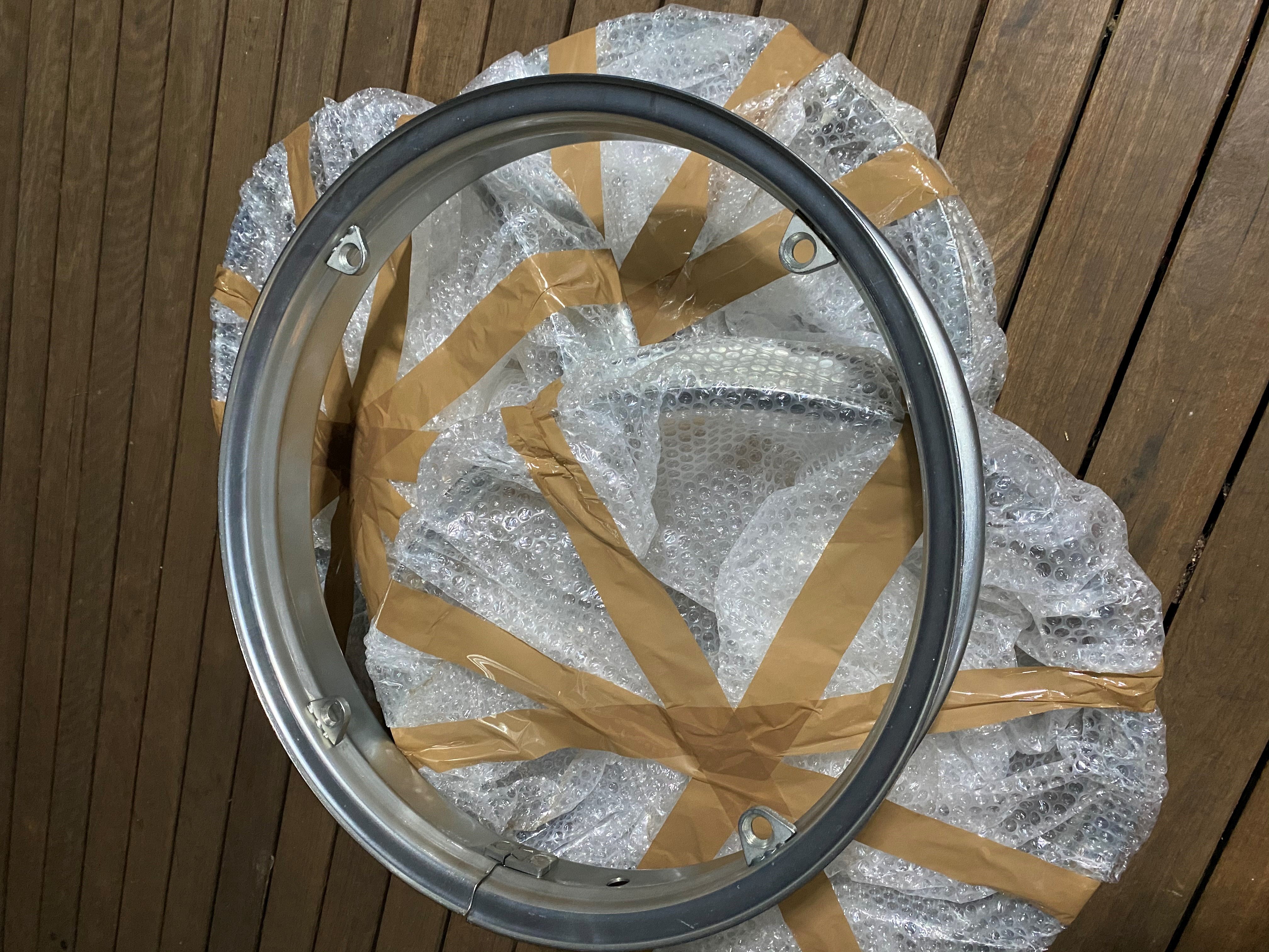 I emailed Stephen at vintagerimsaus.com for a picture of his current 30 x 3.5 inch, 4 lug rim offering and he sent me the attached picture. The lugs are of the later configuration with the tapered profile and no "foot" extending back from the lug. He can supply rims either in bare steel or zinc plated. He quoted me a price of about $1000.00 US to ship four zinc plated rims from Australia to my address in the U.S., subject of course to exchange rate and shipping cost fluctuations.