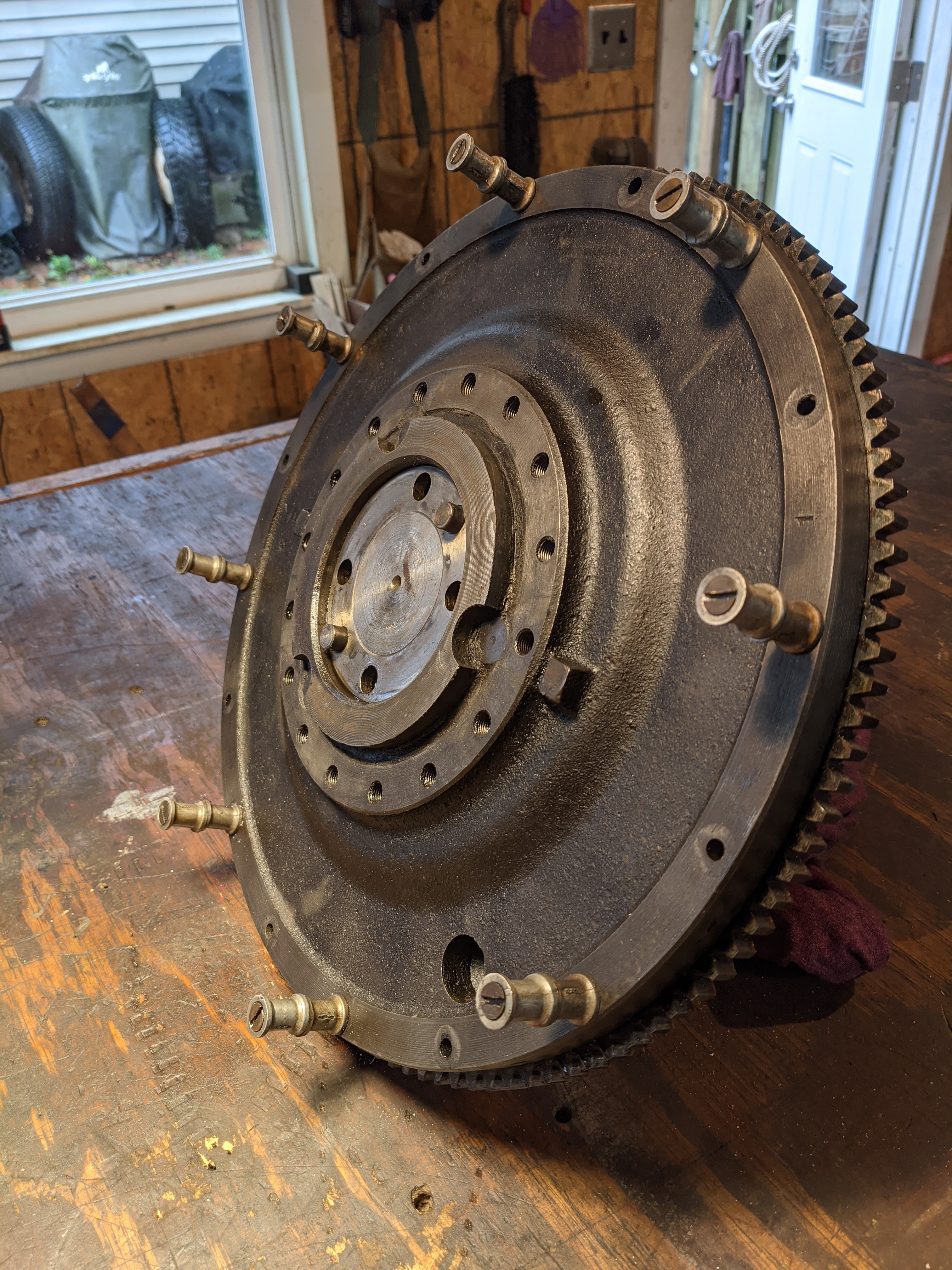 Our car does not have any magnets or slingers on the flywheel to splash oil. Only the bolt heads that attach the starter ring gear. I do have and recommend the accessory oil supply that attaches to the left side of the hogshead and feeds oil to the front of the engine.