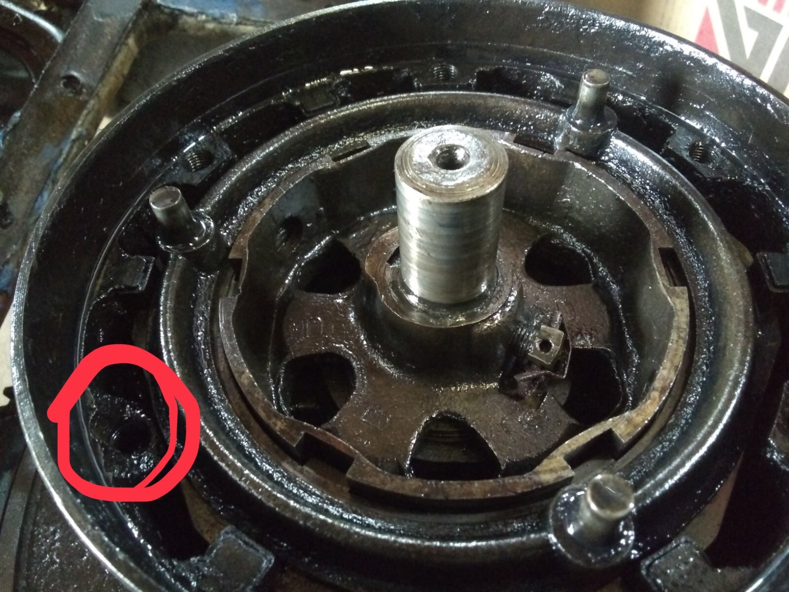 Photo of an earlier transmission to show where the disc-drum lines up with the inside of the drive plate: