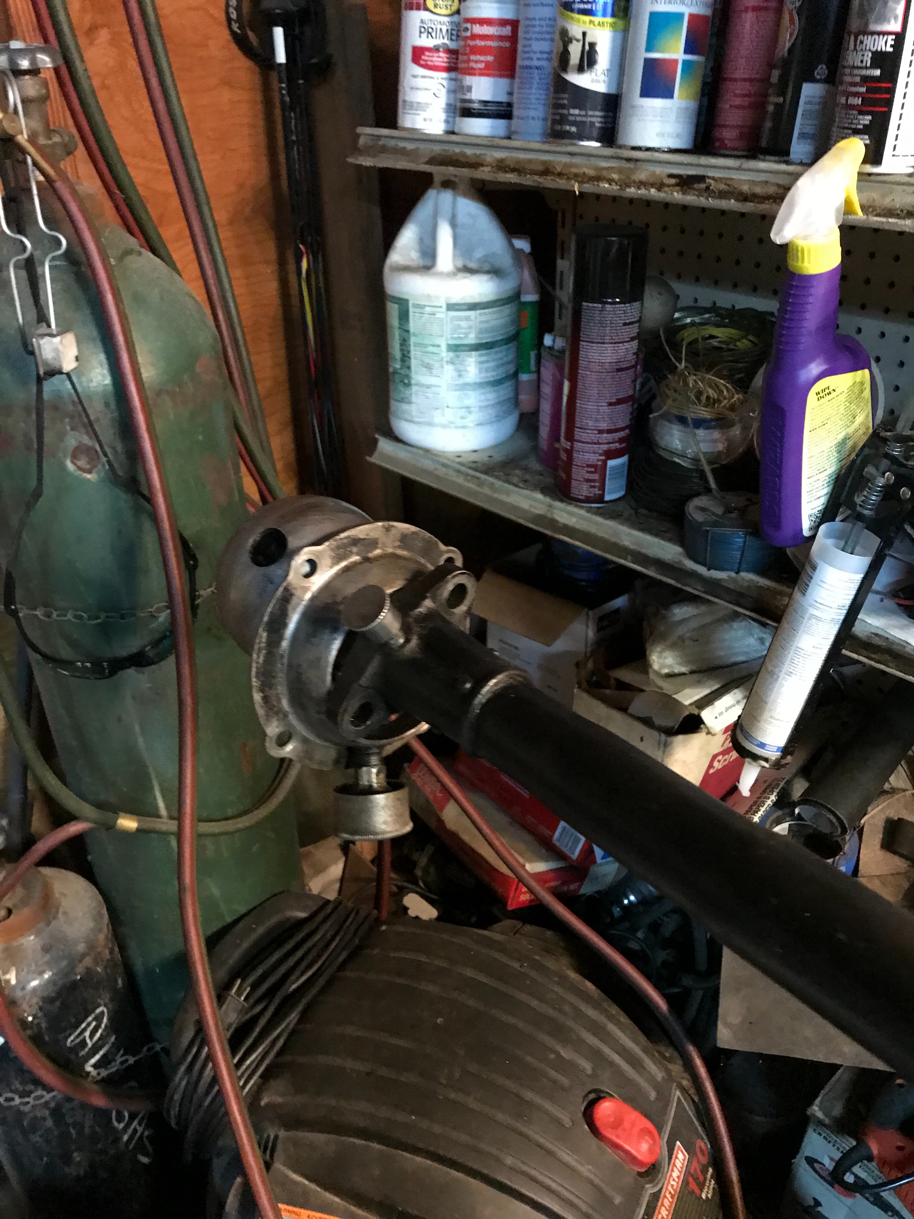 My friend Doug and I, unpinned the U-joint, drove out the old driveshaft bushing on my ‘24 Touring, and replaced it with a new brass one.