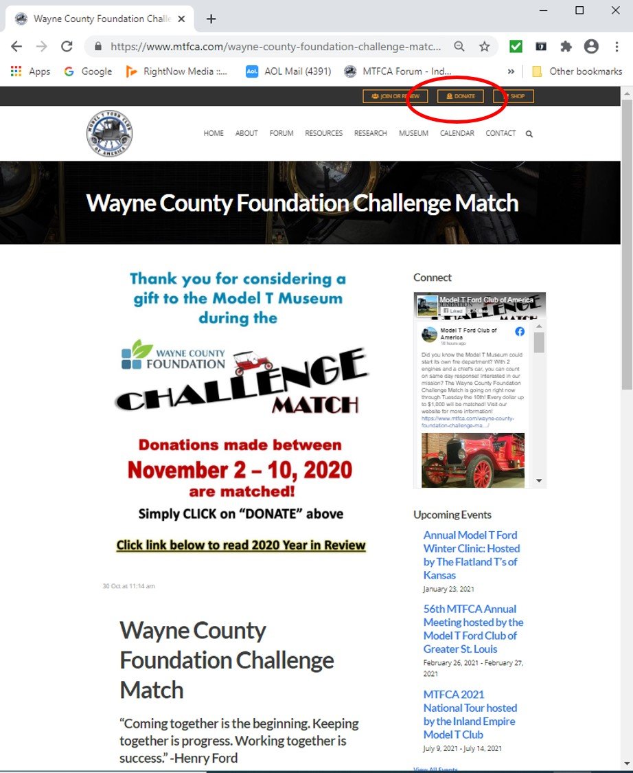 I almost forgot about the deadline for the Matching Grant that the Wayne County Foundations has offered the Model T Ford Club of America (MTFCA). I looked on the forum to see if anyone had said anything about it, but I did not see any posting about it. And a word search only turned up the posting for 2019 when the Wayne County Foundation generously offered a matching grant last Nov also. Why do they do that? Because our MTFCA Museum is located in Richmond, Indiana which is located in Wayne County Indiana. (They also appreciate the old cars, MTFCA Museum etc.)