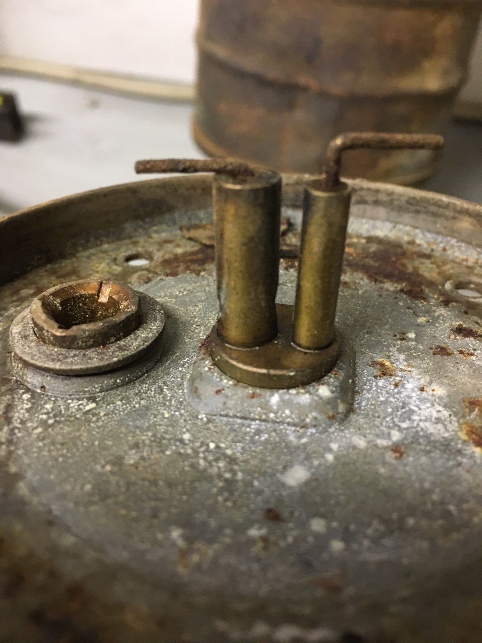 A guy in our "T" club just picked up a 1931 Essex (thus, the tie in to the "T"), I also have a '31 Essex that's been sitting in the back of my building for "some day". He got my interest going on the thing and thought I'd start out figuring what my vacuum tank is missing. I don't know the manufacturer, but there is no place for the usual mechanism the Stewart tanks have to be mounted. Anyone recognize this tank and know what is needed to get this going? Looks like I need the inner tank also.