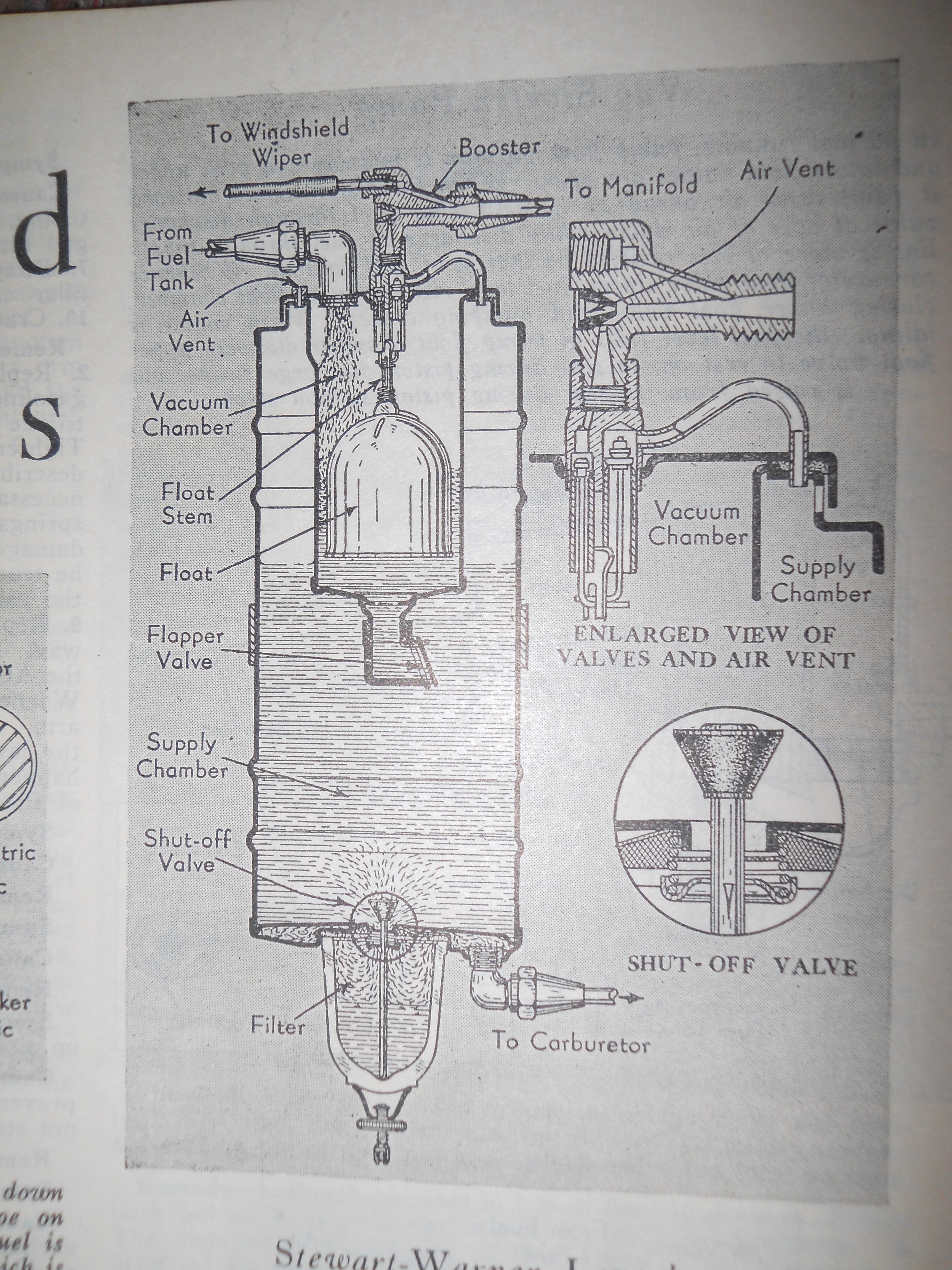 Yes there is an inner tank. A good working vacuum pump should work fine, but I would suggest getting one that is a little more serviceable. That one looks to be a sealed unit which back in the day might have been ok. If not a Stewart, more common type, electric fuel pump with a regulator would be my next choice. Hope these photos of the diagram work ok for viewing. If too small just hold down the Ctrl key and click the + key to enlarge. (hold down the Ctrl and click the 0 key to return to normal size, not the O'h key)