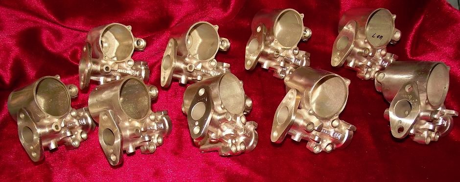 So I spent the day finishing two OF's and putting them in the mail. Should have taken a photo when I had 11 of them on the bench doing various machining processes to the mating surfaces on them. Had the other two in boxes before I thought to line them up and take pictures. So here are 9 Stromberg OF's that will be getting parts in and on them in the next few days. I've never had this many all at once before and probably never will again.