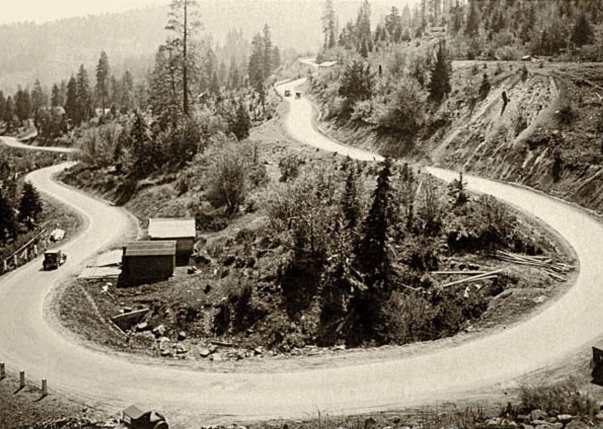 While I can't say for sure from the picture, the 4th picture down sure looks like the old horseshoe curve at Cressmans on the way to Shaver Lake from Fresno CA. This was the curve that gave the logging trucks such a hard time coming down from Shaver. The State realigned the curve in the mid 1980s making things a lot safer. The fiist buildings of the famious Cressmans Store are on the inside of the curve just down hill from main curve. The logging trucks would stop at the store to check their load and brakes after making it around the curve. We loss the Cressmans Store to the Creek Fire this summer and many newer homes down hill from Cressmans.l