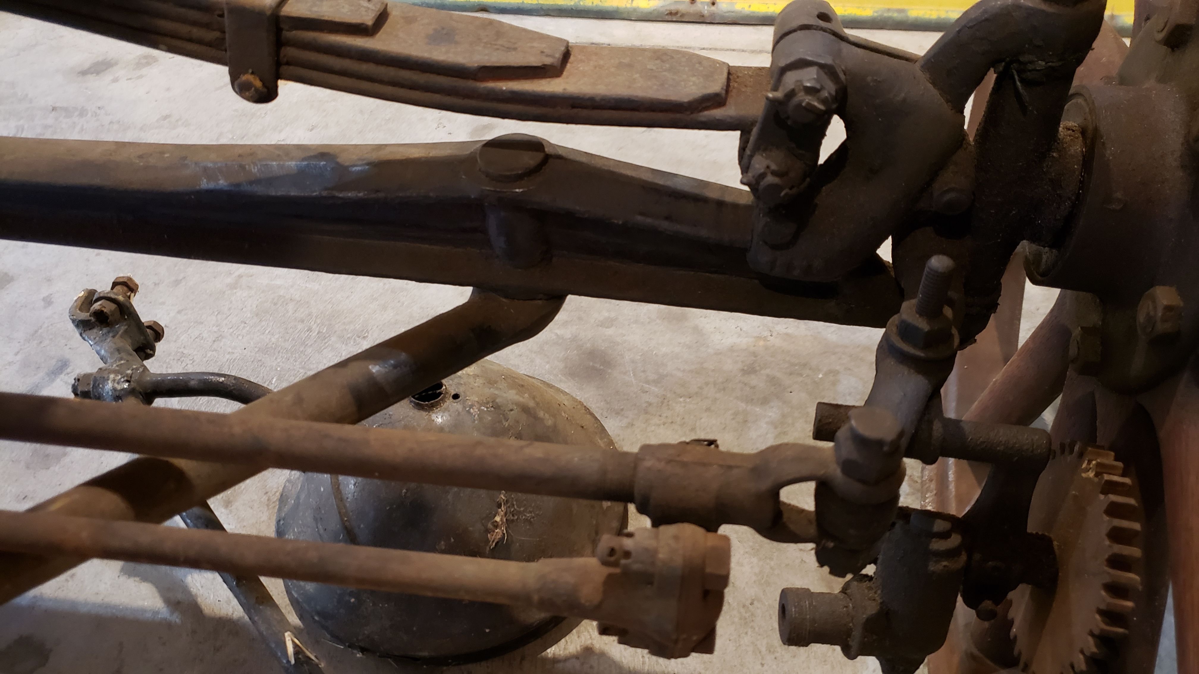 I test drove my friend's 1914 just after he bought it. Seemed fine until I made a left hand turn. Both front wheels swung hard to the left, nearly causing me to hit a stopped car. If I hadn't been on my guard to begin with, it would have been a collision. When we got back to my friend's house, I looked over the front end. All looked fine. Then I turned the wheels left again, with the car standing still, and saw the whole front axle roll forward. It actually was as if it were wanting to roll under the car. It caused the caster angle to go from normal to maybe 15 degrees the wrong way, (i.e. forward).