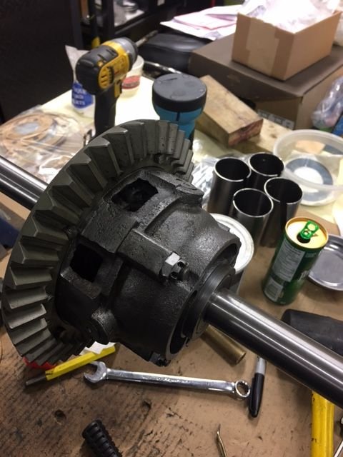 So now I have a brand new ring gear and pinion gear as well, new axles, all new trust washers, new sleeves, neoprene seals, new keys, new trust plates (I have to remove the old one, Some are very hard to see), I also ordered a new Modern Drive Shaft Pinion Bearing Kit, new gaskets, etc.