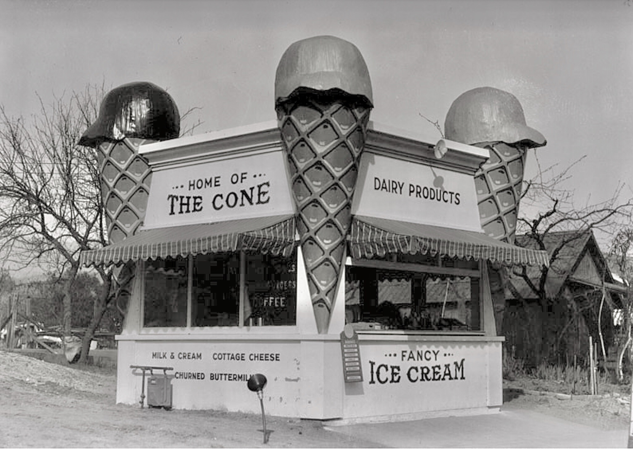 Norm's mention of the San Joaquin Valley reminds me of a cafe on old US 99 between Bakersfield and Fresno, I don't recall exactly where. It had a plane stuck nose down on the roof to look like it had crashed into the building. I've seen photos of similar places, but so far I haven't found a picture of that one.