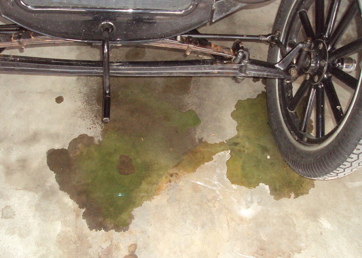 That's coolant (as we all know). I have an issue with my repop rediator leaking from the radiator inlet (top hose) and am planning on pulling and (hopefully) repaiting it.... but I still think there's other forces afoot. I'm consulting my 100 year old Tarot deck, but all it seems to tell me is (a) I need to get my hair bobbed, (b) practice your charleston before the next dance marathon, and (c) get a horse. No help. I think I'll go back to casting spokes and reading T spring leaves...