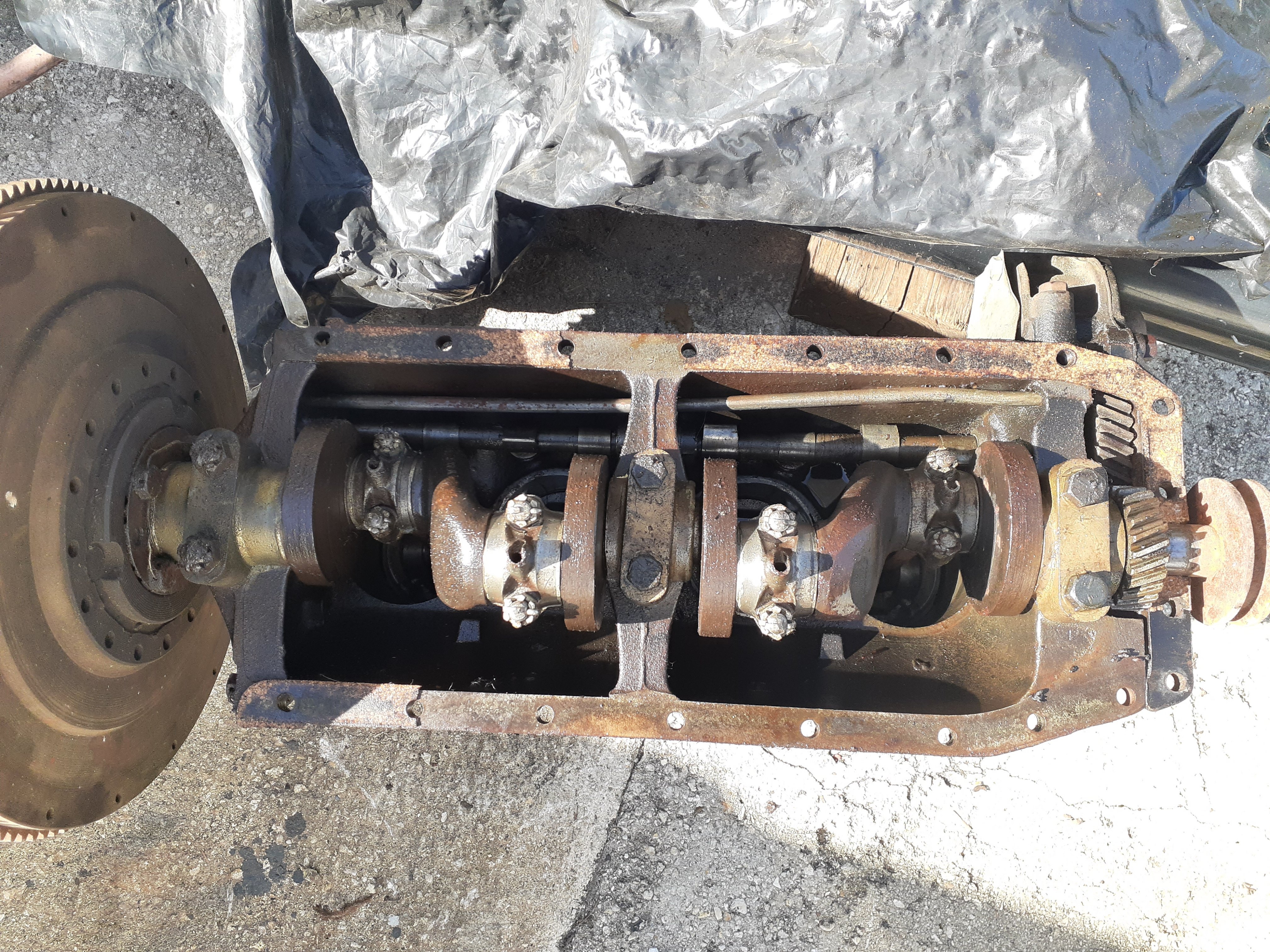 The crank is shortened, so should drop right in a pan. But I would recommend taking the flywheel off and looking for a weld on the end of the crankshaft. Many cranks that were cut down many years ago were only welded in the journal radius, and are prone to breakage. If you can see where the flange registers in the crank, I would groove it out and lay in a really hot TIG weld with stainless steel filler rod. Have done this before on a crank that broke, and it’s still running today!