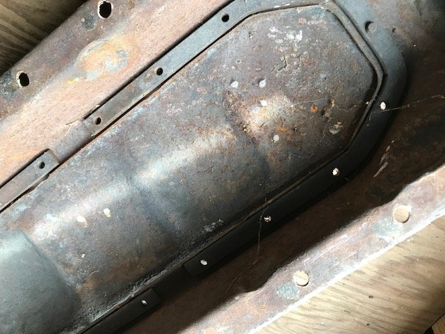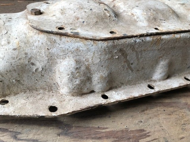 Pan modification shown. If you look closely at the previous picture you can see where the block is ground to clear the counterweights. Same with the pistons. Enjoy.