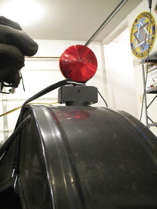 I adapted HF magnetic trailer lights and set them on my fenders. I had to use welding rod hooks and bungees to keep them from bouncing off.