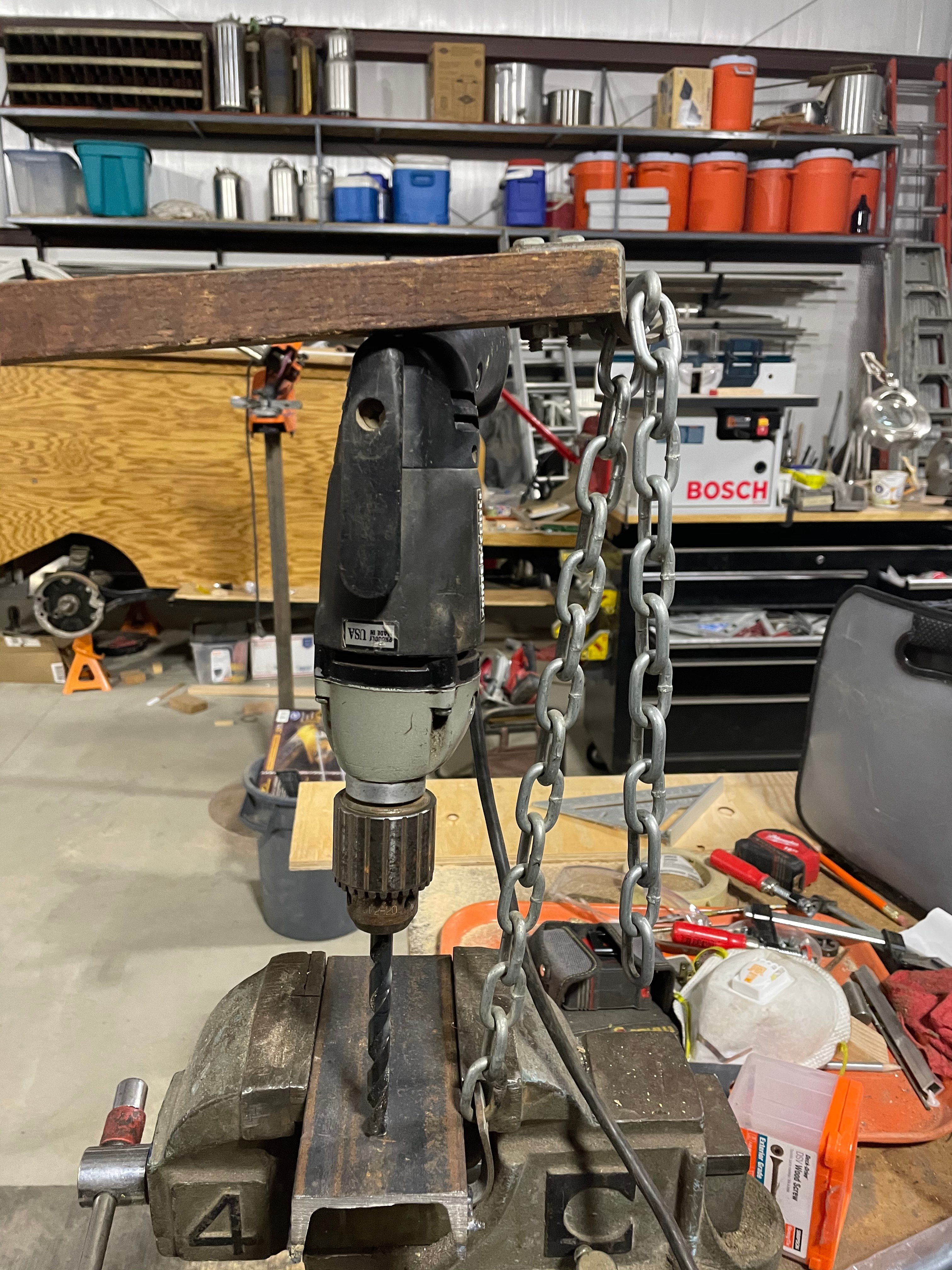 By the way, I disagree with the idea of drilling progressively larger holes. Drill a small marker hole for the big bit to center in, get it turning the correct speed, douse it with some Mystic Metal Mover and drill the hole. One time. One bit. The hole will be straighter, closer to size and will not dull nearly as quickly.