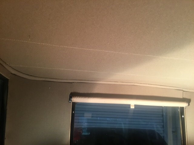 Headliner is attached at the edges only and runs straight across. It is not attached to the ribs, so, does not follow the curvature of the ribs, though, as my photo shows, the top of the body at the rear (and front) has a curvature from right to left with the peak in the center, that gives the headliner a curvature that follows the curvature of the ceiling, somewhat, without being attached to the ribs. When I did my upholstery, the roof was already in so I was unable to attach the headliner to the main roof frame as recommended. Luckily, there was 3/4” of wood showing below the ribs and above the body top all the way around the rim, which I nailed the headliner to as close to the ribs as possible after stretching it tight. The “Carter’s Cut and Cover” kit provided no covering for the headliner nails going in the side of the frame, so I went to the hardware store and got a long piece of 3/4” PVC quarter round and, with a heat gun, formed the quarter round around the back corners, then nailed the quarter round to the roof frame with the excess headliner material hanging down behind the quarter round. When the quarter round was nailed in place into the side of the main frame over the headliner nails, I wrapped the excess headliner material hanging down behind the quarter round up and over the quarter round and stuffed it in the tight joint between the top of the quarter round and the headliner that was tight against the headliner. Not perfect, but sufficient. Jim Patrick