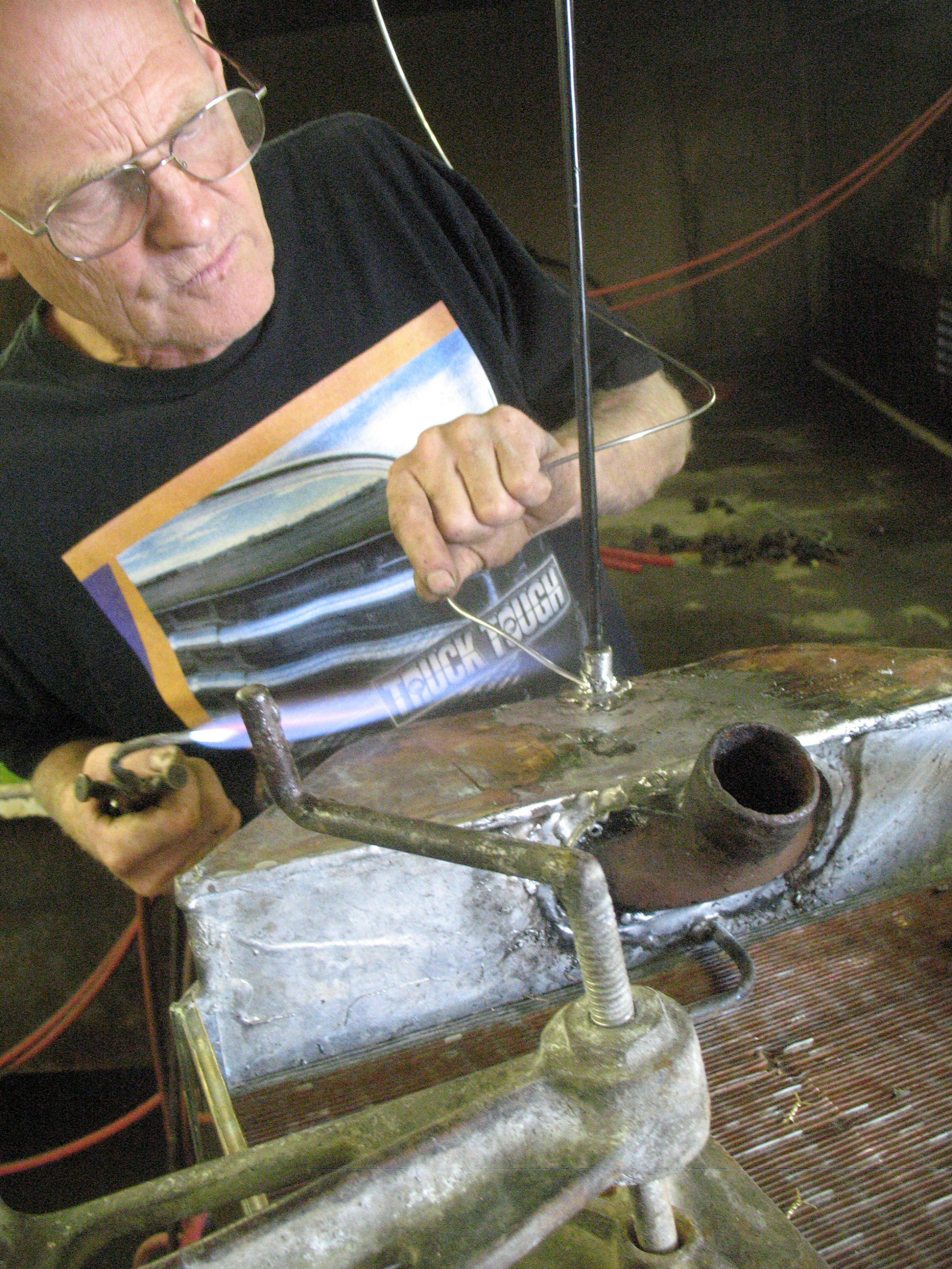 Sorry to hear the sad news,On way home from Chickasha we dropped a brass radiator several years ago ,Tom did a fine job .Since then I found a place close to home who repaired a brass radiator for me.Pages Welding,Zumbrota MN.507 732 5717.