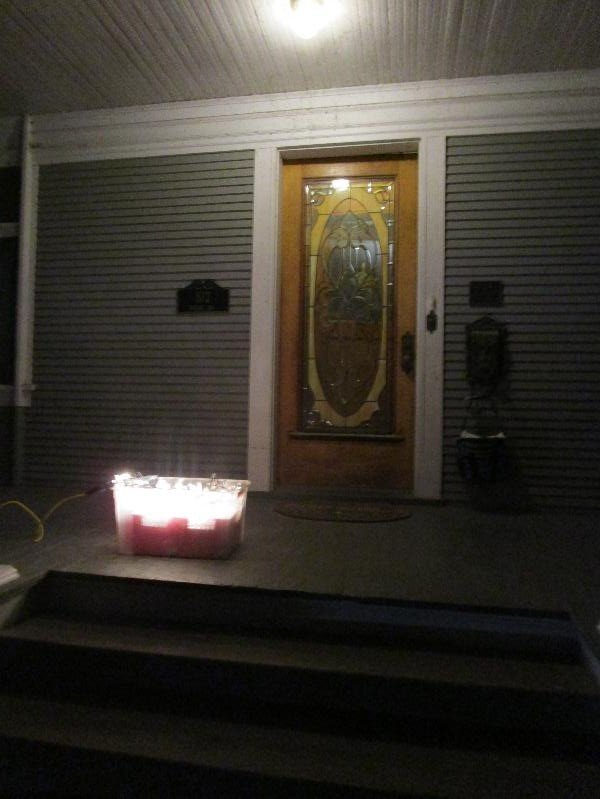..put our exterior Christmas light strands on the front porch, which I had resisted doing for the past 15 years. This year I finally gave in and honored her wishes. See what you think.