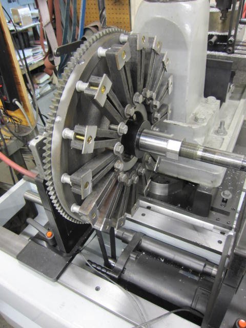 John showed a picture above of a pretty standard flywheel mandrel. The flywheel is radially located on the mandrel by the cone as shown above. The cone angle is steep enough that it contacts the edge of the bore in the flywheel- not the chamfer on the bore. BUT, as Dennis asked above, it is always good practice to indicate the inside diameter of the counter bore that locates the flywheel on the crank flange during setup, to make sure it is running true. To add to this, any clearance between the crank flange OD and the ID of the flywheel counterbore can introduce additional runout at assembly.