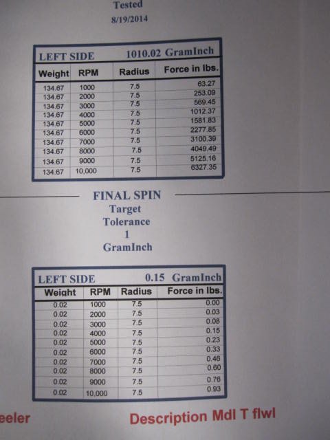 Last comment- balancing machines with modern electronics are amazingly sensitive- down to the point where you can chase a perfect balance using an 1/8" drill bit and the balancer will see the change in unbalance. It almost becomes a game where you want to see how "perfect" you can get it even after the machine is telling you that you are in spec for a given unbalance amount. Not so easy to do with older equipment. We upgraded our balancer about 4 years ago, and the difference was amazing- but not inexpensive.