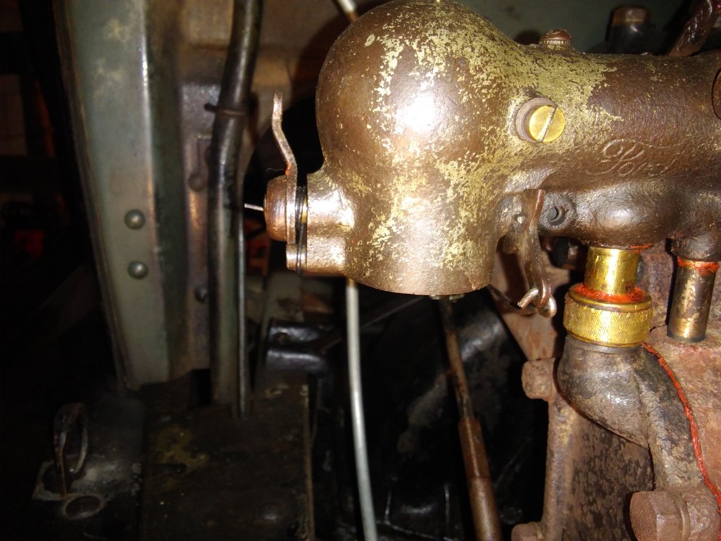 Chris - final development - The choke shaft was mis-drilled. A new reproduction part. I located the part by installing an old shaft in my cross drilling jig, and after aligning the holes, pulled the old shaft out, inserted the new shaft, and put the hole in the correct spot. Actual drilling took 30 seconds. Time spent figuring it all out - about 3 hours. Plus the time you spent providing the pics, which finally tipped me off to the problem.